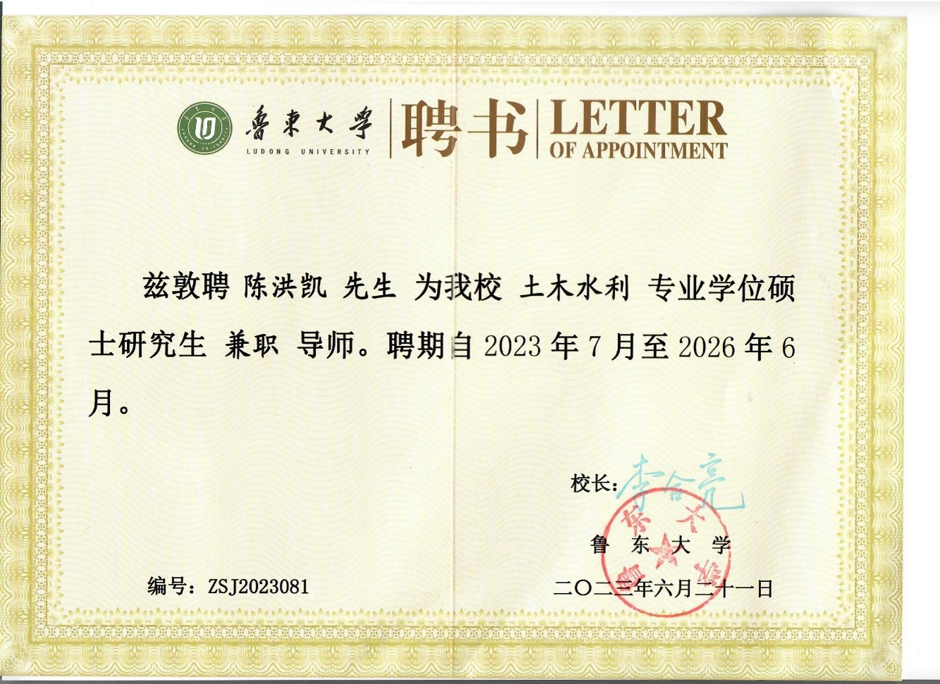 bat365官网俄罗斯自然科学院外籍院士陈洪凯教授受聘鲁东大学土木水利专业硕士生导师