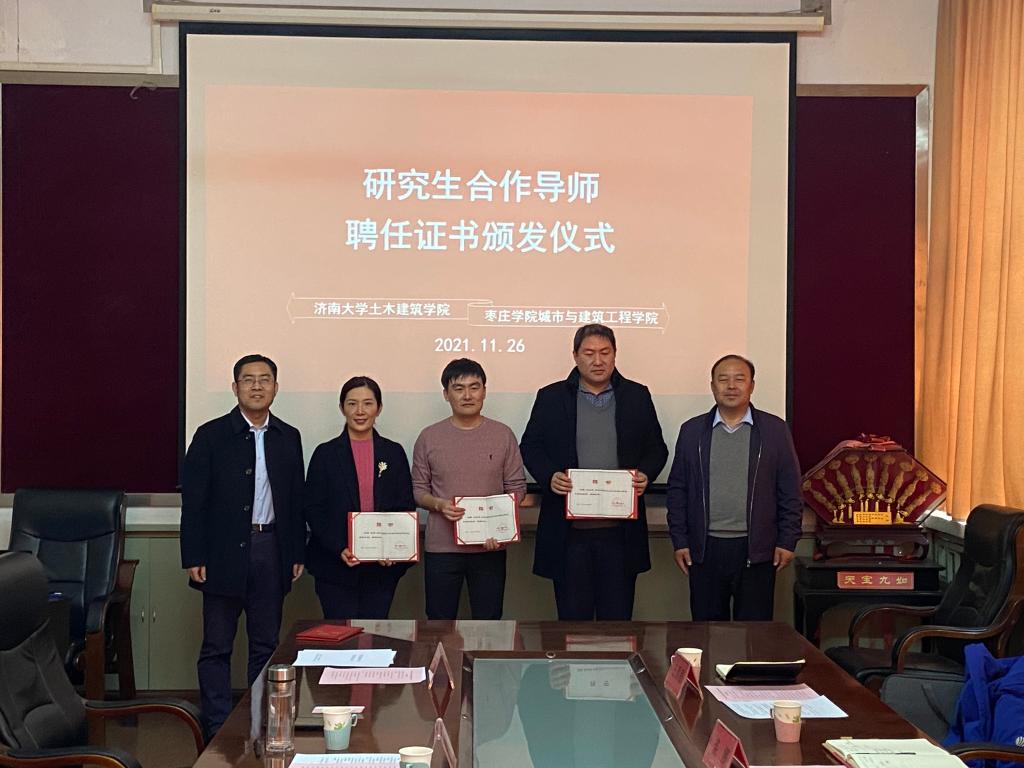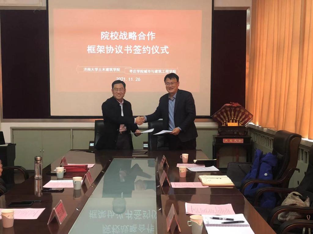 11月26日,枣庄学院党委委员、统战部部长、bat365正版唯一官网院长林勇一行4人赴济南大学土木建筑学院考察学习并签订院校战略合作框架协议。副院长裘娜、院长助理孙启林、给排水专业负责人王昌稳参加了本次签约活动。