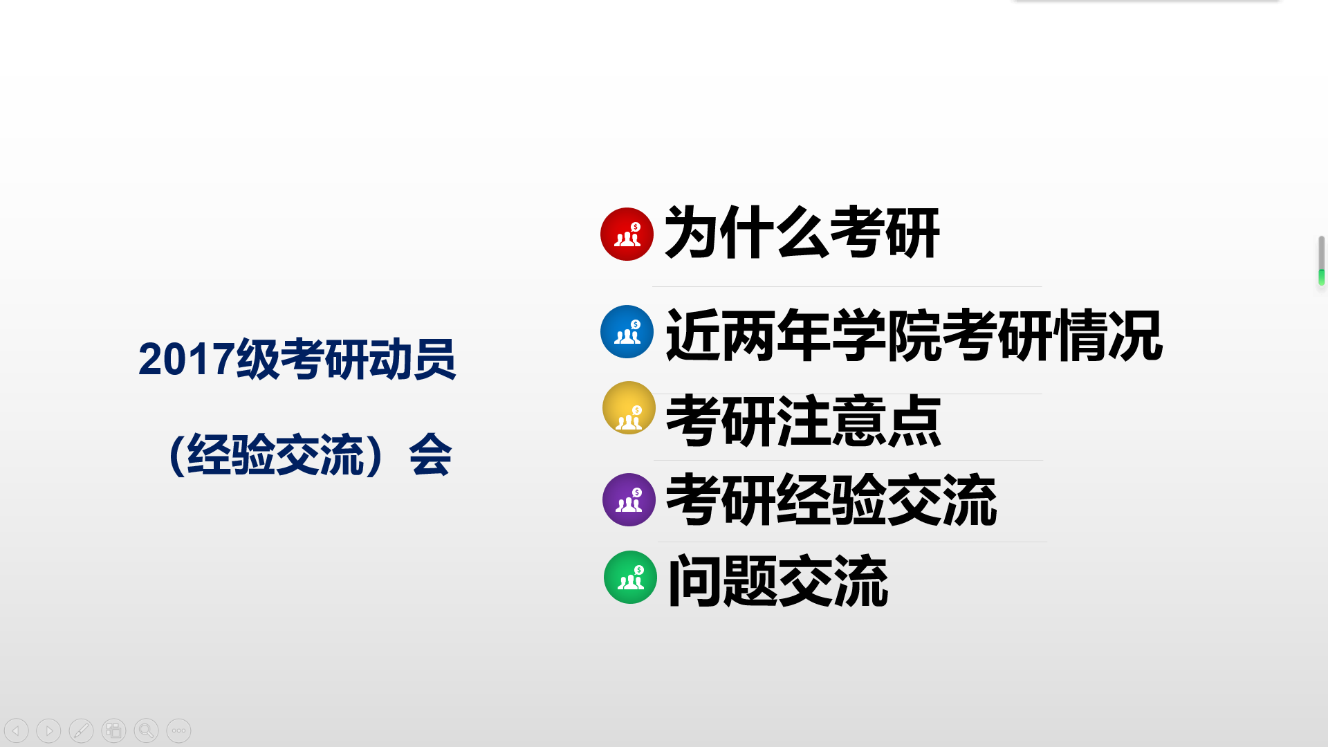 随后由2016级的皇甫帅帅(初试成绩370分,济南大学录取)和张通(初试成绩分别为354分,山东科技大学录取)同学分别介绍了自己考研复习过程的时间安排和学习经验。最后针对部分同学提出的疑问进行了交流,全体老师进行了进一步地解答和补充,鼓励同学们明确目标、坚定自信。本次考研动员会的召开,使2017级及2019级升本同学对考研形势、意义有了更深的了解,激发了同学们的考研热情,使处于迷茫中的同学进一步坚定信念,端正态度,用恒心与信心积极面对考研。