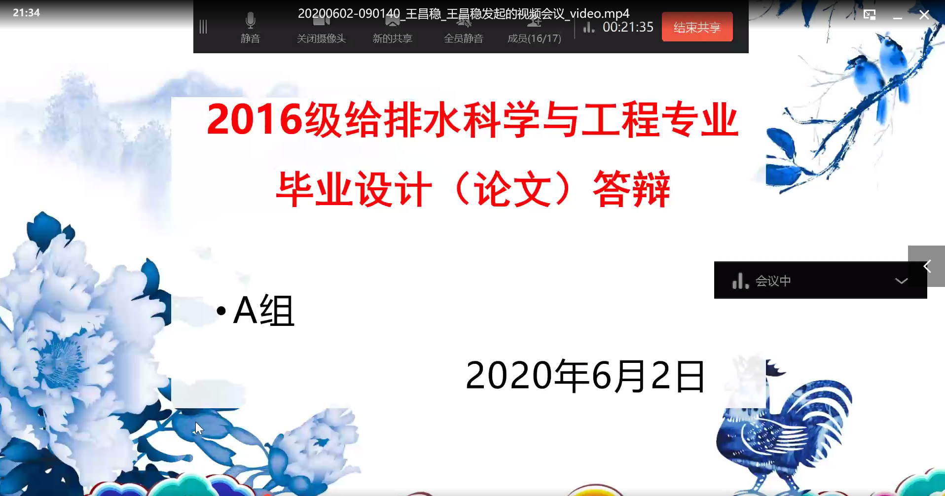 6月2日,bat365正版唯一官网举行2016级(2020届)毕业设计(论文)答辩会,全院共有176名本科毕业生参加答辩。根据当前疫情防控形势,本年度毕业生答辩采取在线答辩形式,这也是学院建院以来首次采用此类答辩形式。