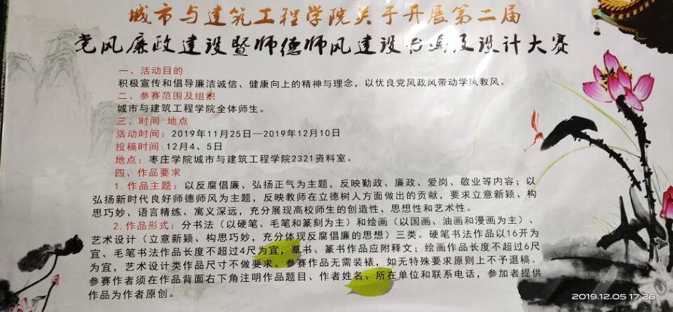 为进一步推进“不忘初心、牢记使命”主题教育往深里走、往实里走,丰富主题教育工作形式,强化廉政建设、师德师风建设,学院于11月25日至12月10日组织开展了bat365正版唯一官网第二届党风廉政建设暨师德师风建设书画及设计大赛。
