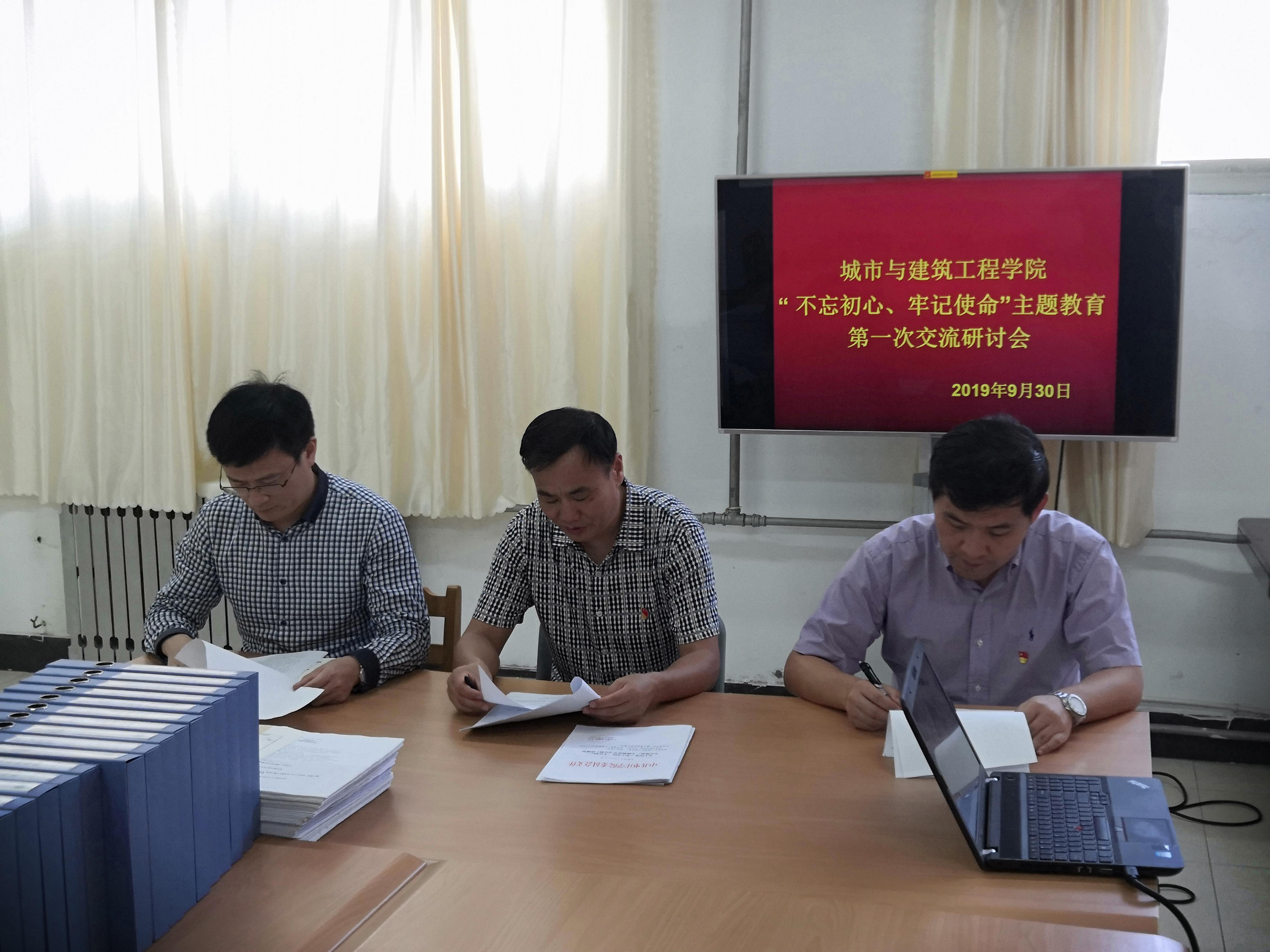 9月30日下午,bat365官网党总支在理工楼S2321室召开“不忘初心、牢记使命”主题教育第一次研讨交流会。学院处级以上干部参加了会议。