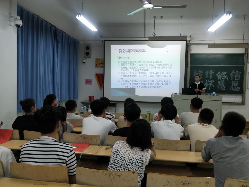 为进一步加强学生诚信教育,做好2019届贷款毕业生助学贷款工作,教育受助学生树立勤俭意识,珍惜国家、学校和社会的关心,强化资助育人效果,bat365正版唯一官网于6月4日晚在理工楼2318举行“践行诚信,心怀感恩”主题宣讲会。全体2019届贷款毕业生参加了此次宣讲会议。