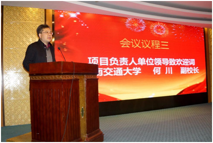 项目负责人单位西南交通大学何川副校长致辞,希望项目团队在项目研发过程中能更好地为行业提供科技支撑,共同促进防灾减灾技术发展,并表示学校将全力落实项目保障条件,加强项目管理,希望各参与单位和项目组成员齐心协力,认真执行好项目进度计划,确保完成各阶段研究任务。