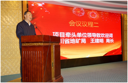 四川省地质矿产勘查开发局局长王建明代表项目牵头单位致欢迎词,他首先祝贺项目团队经过精诚协作,最终顺利获批立项。在总结近几年四川省地矿局重大项目开展工作经验的基础上,指出本项目为科技地矿、科技兴队开创了新思路,并期待高质量地完成项目预期目标。