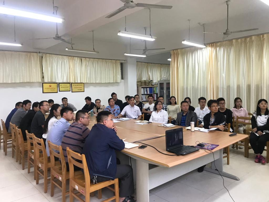 党总支书记李振清传达了《中共枣庄学院委员会关于加强新形势下统一战线工作的实施意见》文件精神。接着李书记带领党员同志学习了《学校宗教工作简明读本》,强调要深化认识宗教工作,积极完善大统战工作格局,做好宗教工作,建设平安和谐校园。