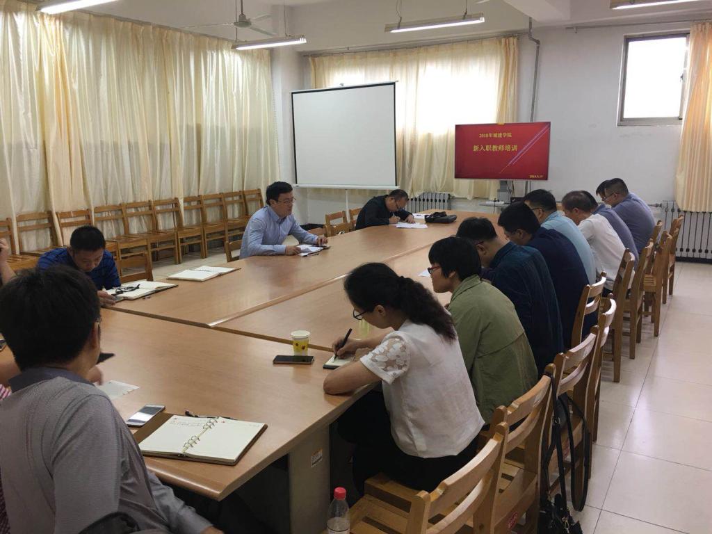9月19日,bat365正版唯一官网在理工楼2321教室举行新入职教师培训会暨城建学院教研活动,学院领导、全院转任教师和2018年新入职的7名博士教师参加了培训会。新教师培训包括学习习近平总书记在全国教育大会上的讲话以及教育部关于狠抓高等院校本科教育的通知、教学工作培训、科研工作培训、实验室安全教育和课堂教育提升计划等五部分。此次培训由院长王满堂主持。