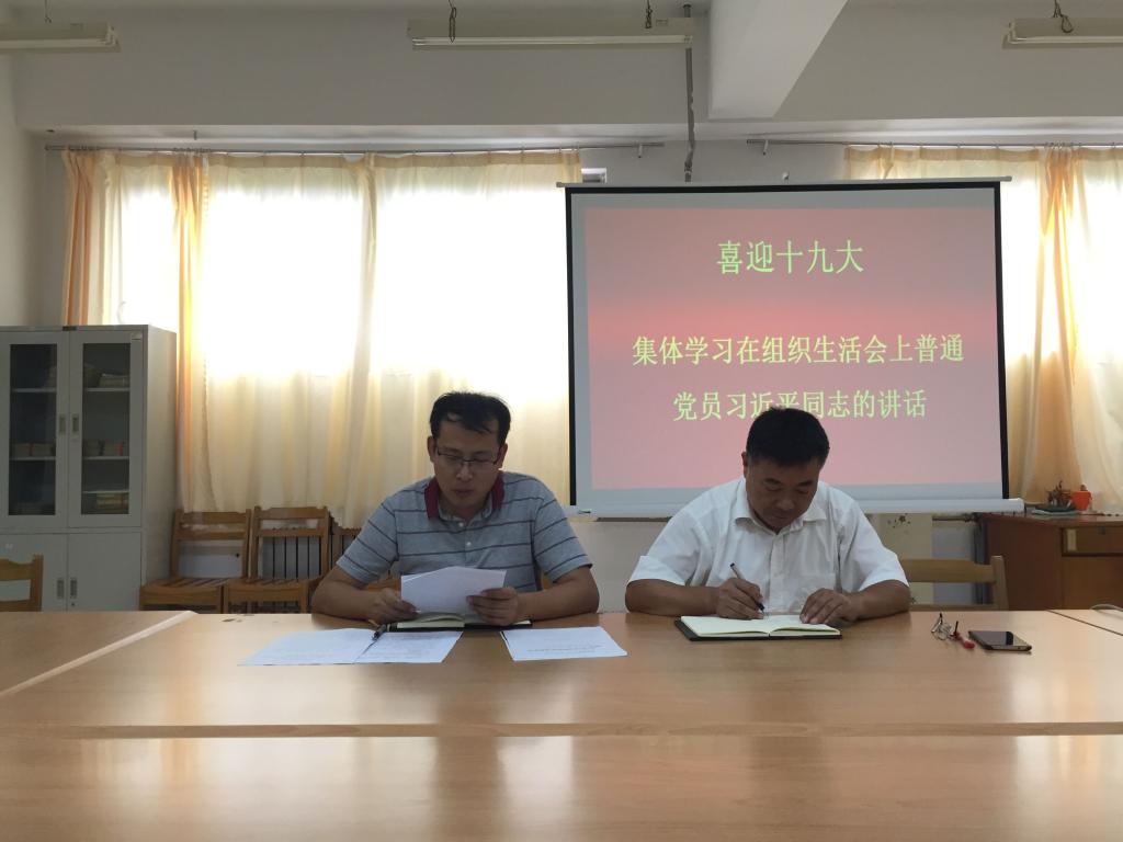 9月27日主题党日活动期间,城建学院教工党支部书记贾广印带领党员同志,认真学习了“习近平作为普通党员在组织生活会上的讲话”,庄文、曲文婷两位同志作了交流发言。