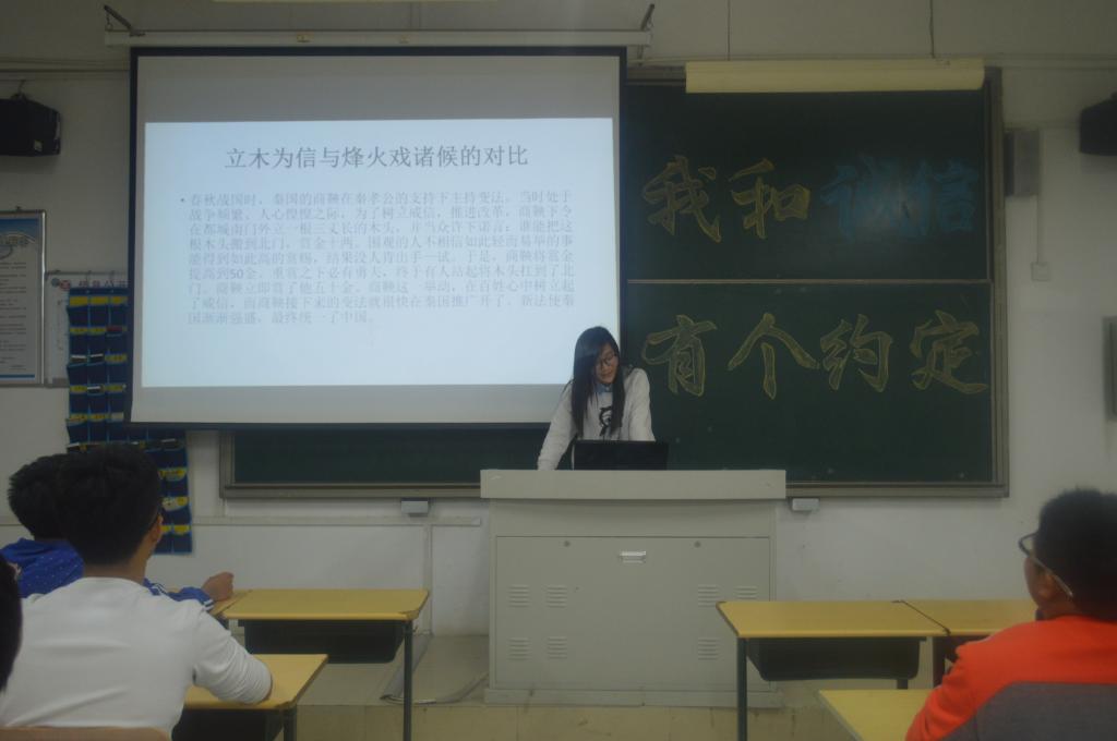 在诚信月活动期间,bat365官网开展了板报宣传、诚信主题班会、演讲比赛、座谈会等系列活动。在宣传板报中,简单的线条和各式的色彩生动形象的表达出了诚信于人的重要性。在主题班会上,组织“诚信为本”的讨论活动和利用PPT展示诚信案例,将诚信教育活动与学风、考风建设相结合。同学们踊跃发言,现场气氛活跃。bat365官网精心准备,组织开展了“诚信立人”的演讲比赛,通过与他人分享诚信故事,从而意识到诚信的重要意义。