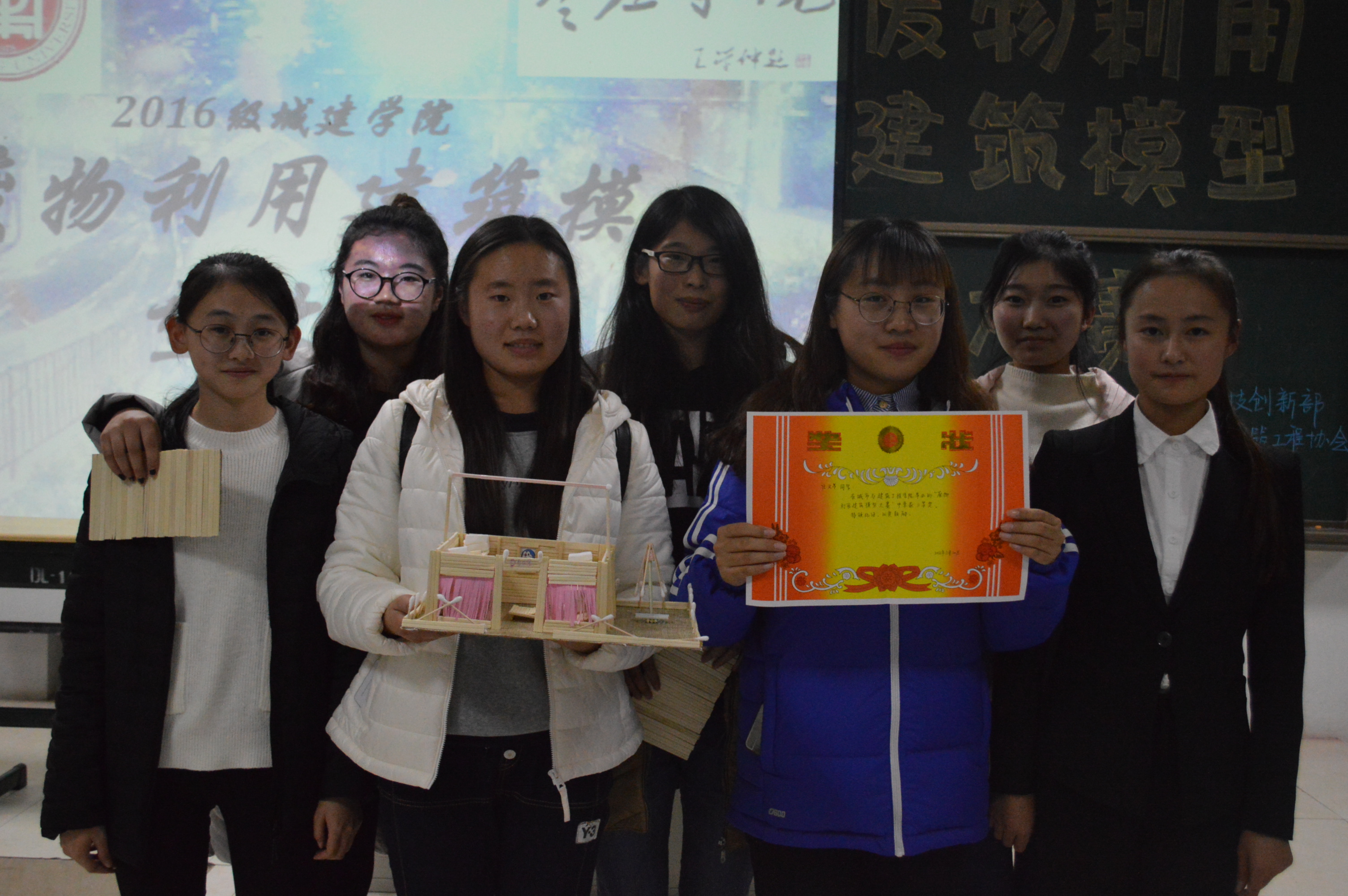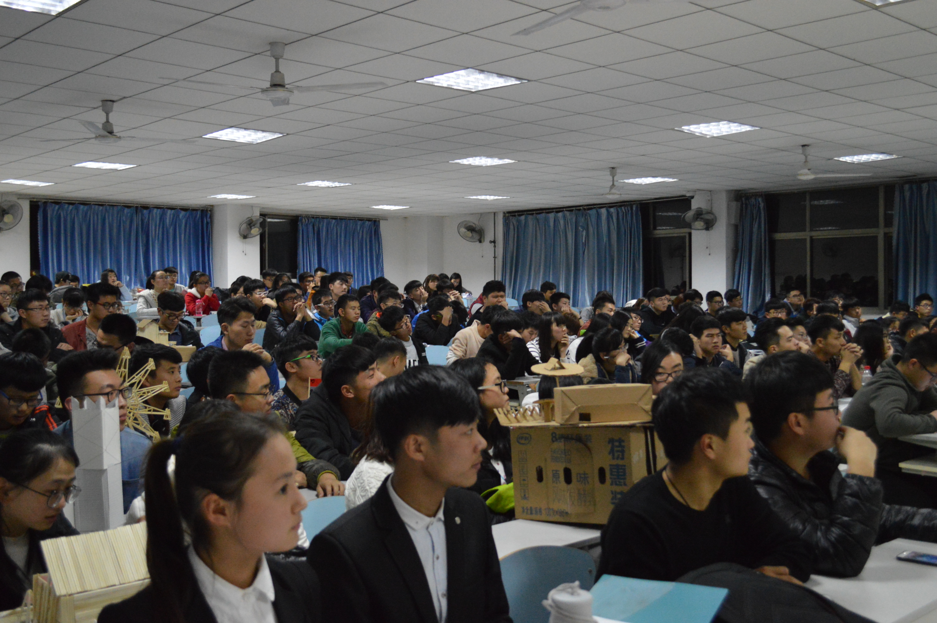 为提高bat365官网学生的环保意识,培养团队合作能力,11月20日,城建学院在2505举办废物利用建筑模型大赛。全体大一学生参加了此次活动。