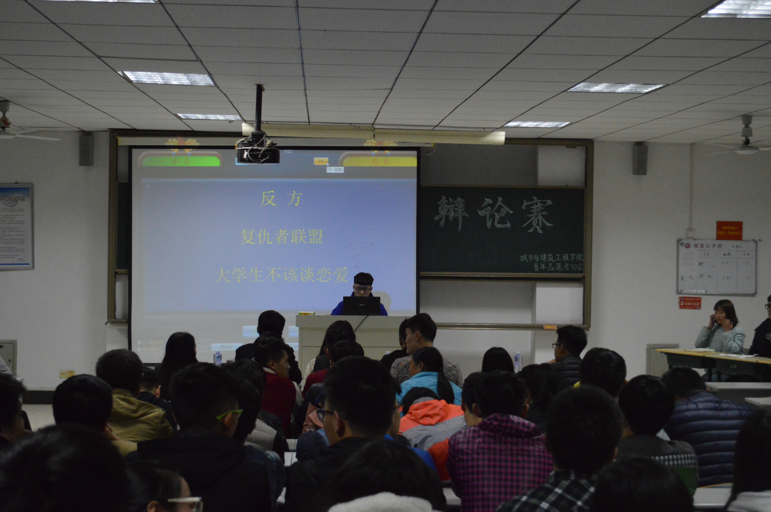 为提高大学生的综合素质,培养敏捷的思辨能力,11月2日在2505举办趣味辩论赛。由城建学院青年志愿者协会主办,学生会干部担任此次比赛的评委,城建学院全体学生参加了此次活动。