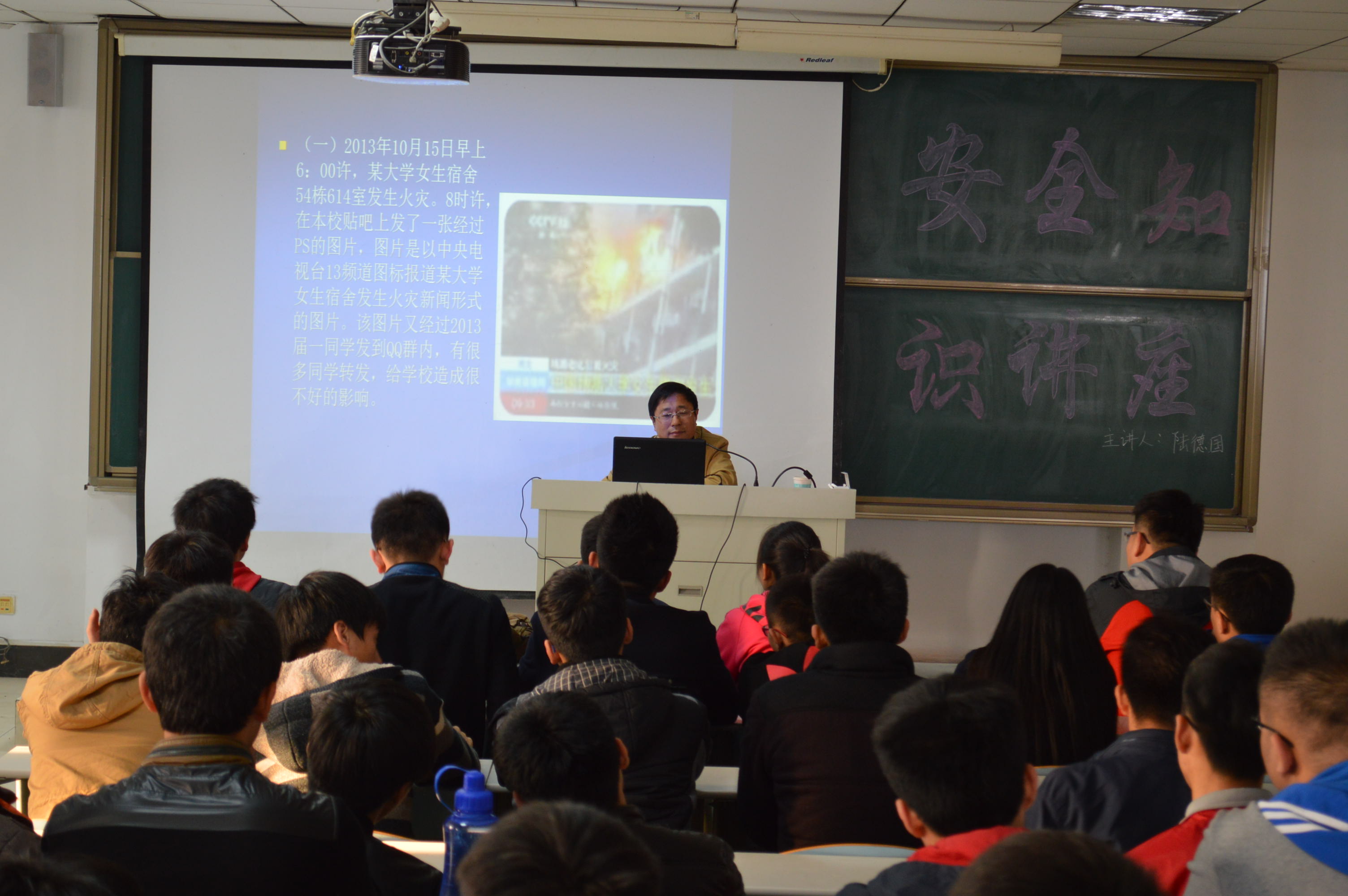 下午,bat365正版唯一官网邀请音乐学院党总支书记陆德国,在理工楼2505举办安全知识讲座,讲座由城建学院负责人主持,近200名师生参加了报告会。
