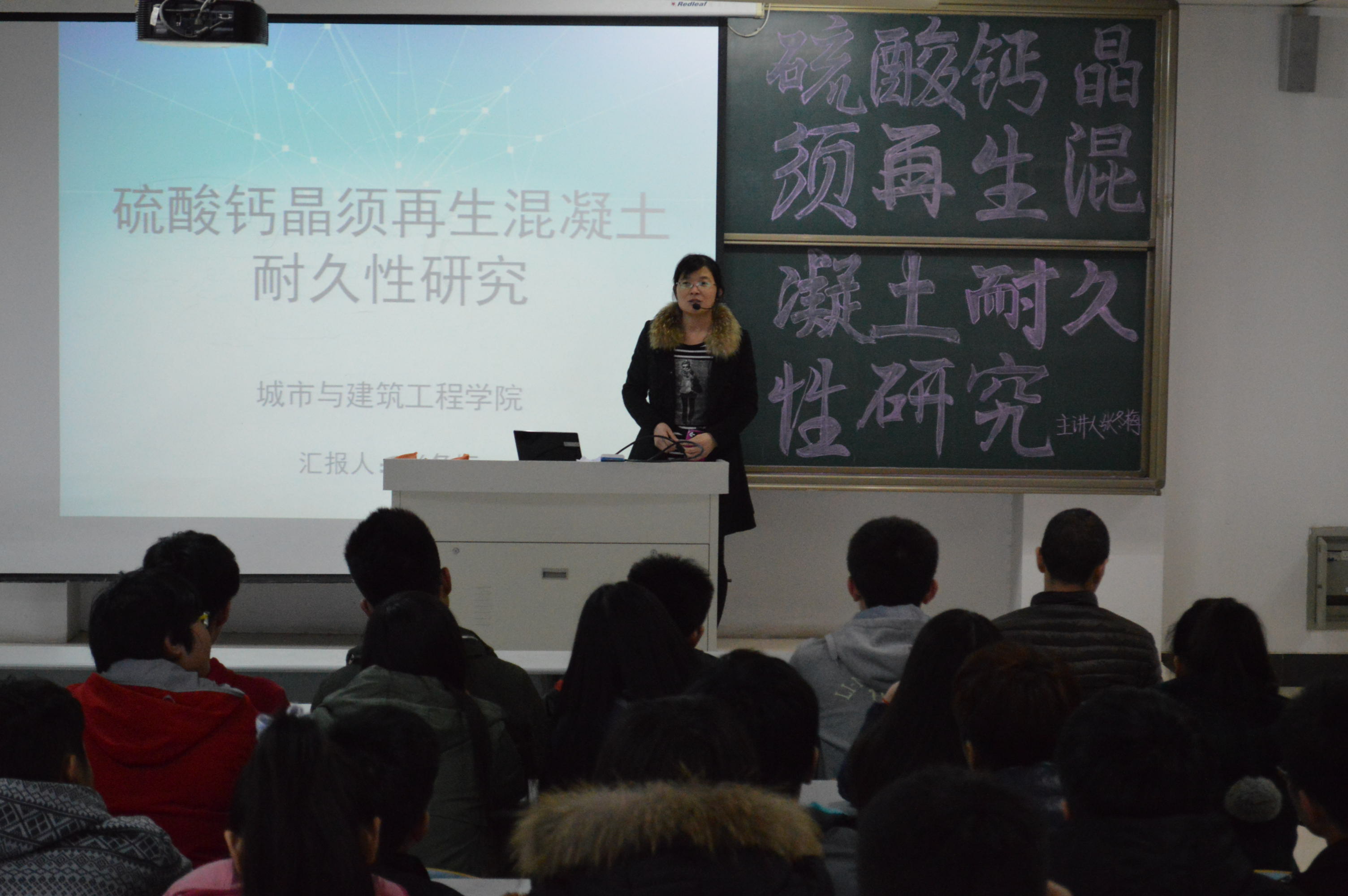 下午,bat365正版唯一官网张冬梅老师在理工楼2505教室作了题为“硫酸钙晶须再生混凝土耐久性研究”学术报告。部分专业教师和土木工程专业全体学生参加了报告会。