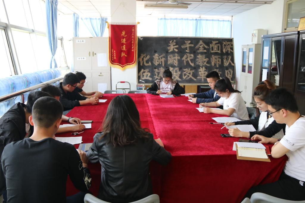 会议由徐鸿飞、杜珊珊同志分别带领本党支部全体党员学习了《关于全面深化新时代教师队伍建设改革的意见》的文件精神。各位党员同志一致认为《意见》是习近平中国特色社会主义新时代为教师队伍建设改革带来的前所未有的机遇,是凝心聚力推进教师制度改革的集结号,也是广大教师深切期盼的福音。《意见》全面阐述了深化教师队伍建设的战略意义、指导思想、基本原则、目标任务,并从师德师风建设、教师专业素质提高、管理制度改革、教师待遇及保障措施等方面提出了一系列政治举措。学习讨论后,党总支书记李振清同志认为各位党员会后需深刻学习领会《意见》精神,要以习近平新时代中国特色社会主义思想武装自己,以文件精神为导向,全面提升个人素质能力,以德立身、以德立学、以德施教、以德育德,抓住新时代教师队伍改革的新机遇,争做“四有”好教师,全心全意做学生锤炼品格、学习知识、创新思维、奉献祖国的引路人。