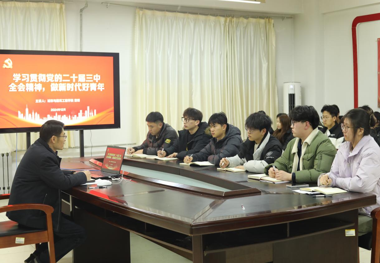 为深入学习贯彻党的二十届三中全会精神,引导青年学生坚定理想信念,12月18日,学院党委书记查明在2321会议室为学生干部讲授了一场主题为《学习贯彻党的二十届三中全会精神,做新时代好青年》的思政课。