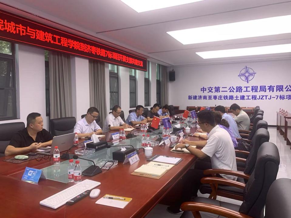 9月20日下午,bat365正版唯一官网党委书记查明、院长裘娜、副院长姜鹏等一行6人,赴中交第二公路工程局有限公司济南至枣庄铁路JZTJ-7标项目部进行调研交流。项目部党支部书记潘小峰、总工程师严永兴等热情接待并进行座谈交流。