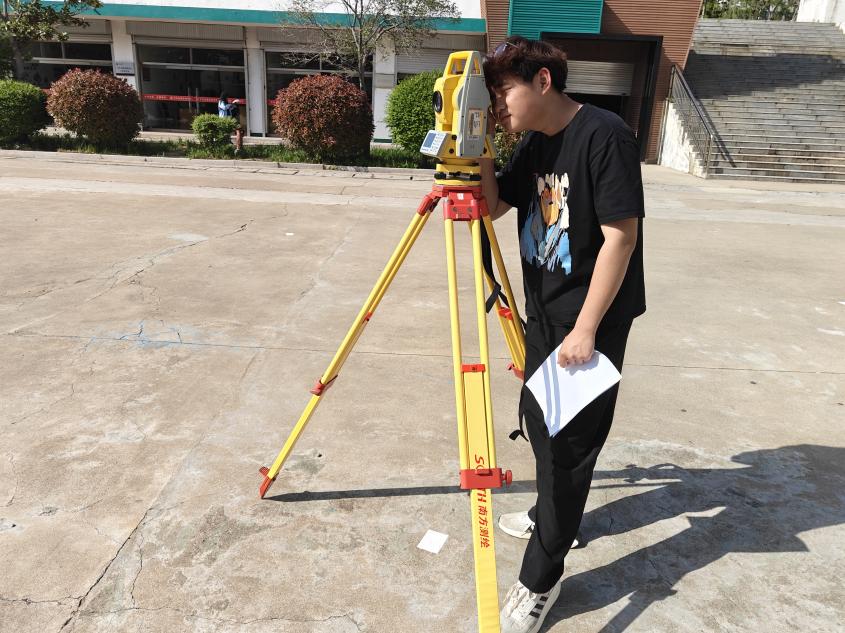 大赛涵盖了多个测量项目,包括水准测量、导线测量、碎部测量等,全面考察了学生的测量理论基础到实践操作的基本素养。在比赛现场,参赛选手们分工明确,默契配合。他们在烈日下一丝不苟地架设仪器、瞄准目标、记录数据,每一步操作都严谨细致,充分展现了测量工作者应有的专业素养和敬业精神。