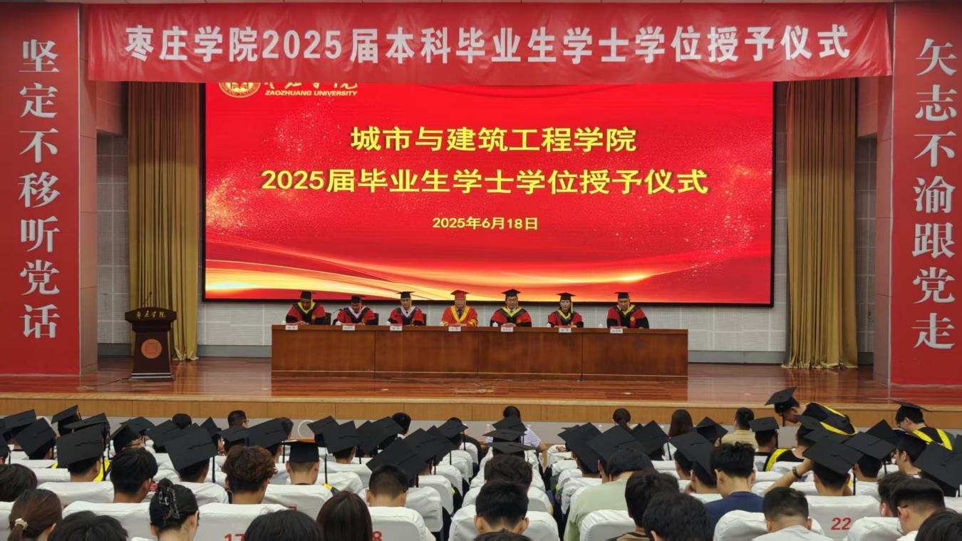 6月18日上午,bat365正版唯一官网2025届本科毕业生学士学位授予仪式在综合楼报告厅举行。枣庄学院党委副书记丰雷、教务处副处长李宏运出席仪式。学院党政领导、辅导员、班主任、毕业生以及在校生代表共300余人参加仪式。学院副院长孙启林主持仪式。