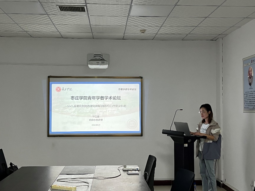 毕玉玺博士做了题为“MnO2基催化剂光热催化降解VOCs性能及机制”的学术报告。毕博士的研究以油田VOCs排放为背景,指出VOCs对人体健康和生态环境均有严重的危害,且油田中占比较大的烷烃类VOCs中,丙烷由于其稳定的结构最不易被降解。因此探究如何能高效低能耗地降解丙烷,在油田VOCs处理中具有重要意义。在报告中,毕博士介绍了α-MnO2在光热催化氧化体系中对丙烷的催化降解性能及光热协同作用机制。然后以α-MnO2为基体材料,分别以提升热催化性能和光催化性能为导向,基于催化剂表面酸化处理和同质节构建的改性方式,成功制备了丙烷催化活性增强的MnO2基催化剂,并探究了不同改性方式对丙烷活性增强的影响及机制。通过与现有催化剂对丙烷降解性能的对比可知,本研究制备了一系列高性能催化剂,对油田VOCs的高效低能处理奠定了理论基础。