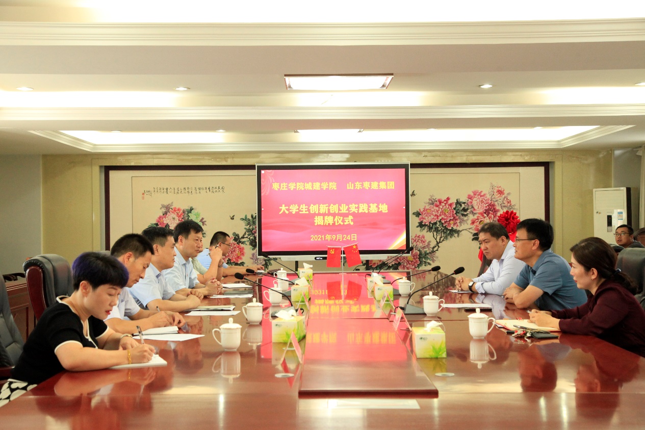 为进一步探索实施双创教育模式,推进学生创新创业实践教育工作,bat365正版唯一官网和枣建集团共建大学生创新创业实践教学基地。9月24日上午,双方在枣建集团总部举行了创新创业实训基地揭牌仪式。活动由山东枣建集团党委书记魏民主持,校党委委员、统战部部长、城建学院院长林勇与枣建集团公司总经理刘辉代表双方为创新创业实训基地揭牌,出席活动还有双方相关负责人员。