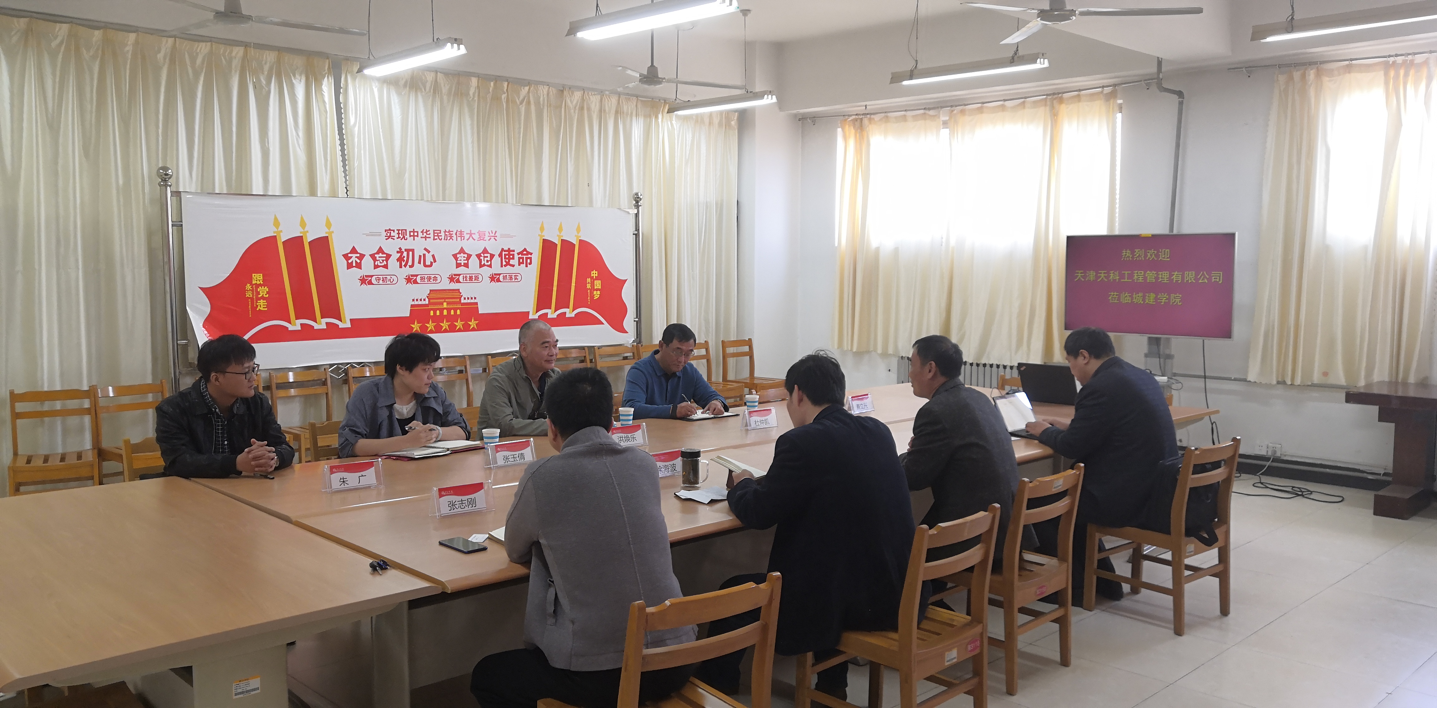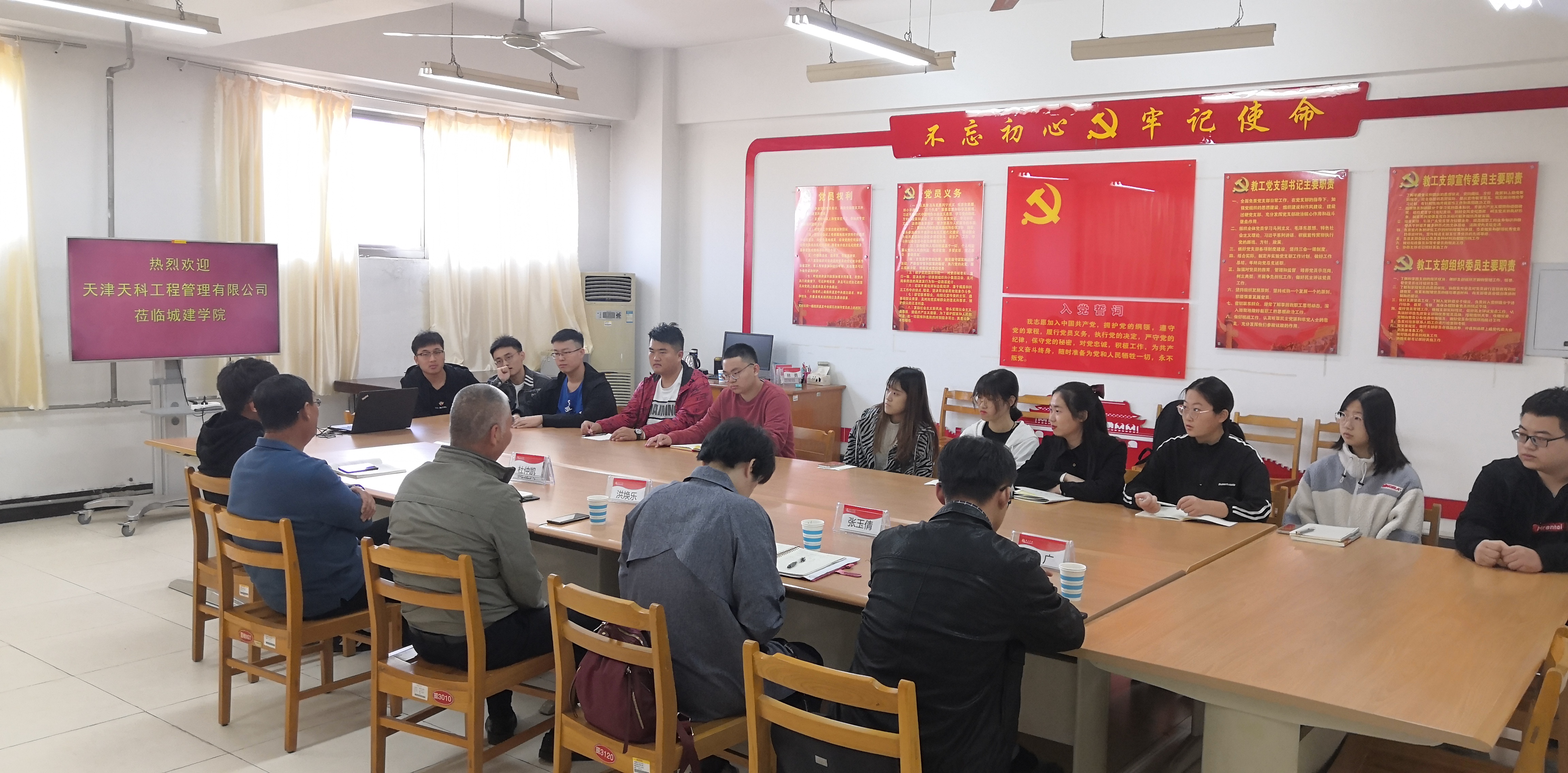 2020年10月22日上午,天津天科工程管理有限公司副总经理洪焕乐、杜仲凯一行四人来bat365官网考察交流。bat365正版唯一官网党总支书记李振清、党总支副书记徐海波、就业指导教师、土木工程专业负责人及部分学生代表参加座谈会。