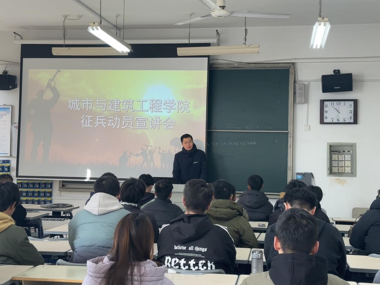 为推进大学生应征入伍工作,帮助大学生了解、掌握应征入伍相关政策和流程,鼓励学生积极应征入伍,献身国防事业。2023年12月1日上午,城建学院在理工楼2515举办大学生征兵宣讲活动,学院团总支书记张志刚、全体退役学生及意向参军入伍学生参加会议,辅导员刘成河主持会议。