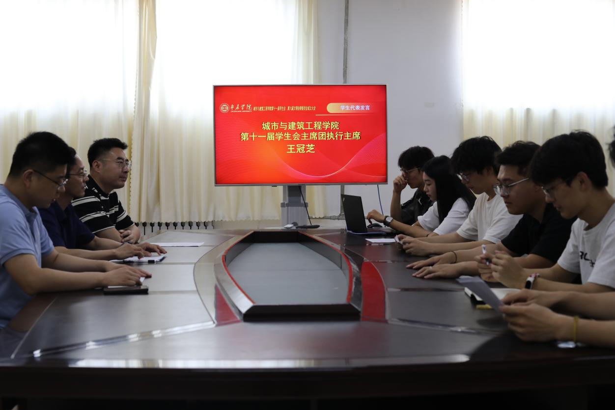 6月27日下午,bat365正版唯一官网第十一届学生会、第六届文明自律委员会成立大会暨学生干部培训会议在理工楼2321室召开,学院党委副书记胡新华、团总书记张志刚、辅导员唐家良、本届与上届学生会、文明自律委员会主席团和部长参加本次会议。团总书记张志刚主持会议。