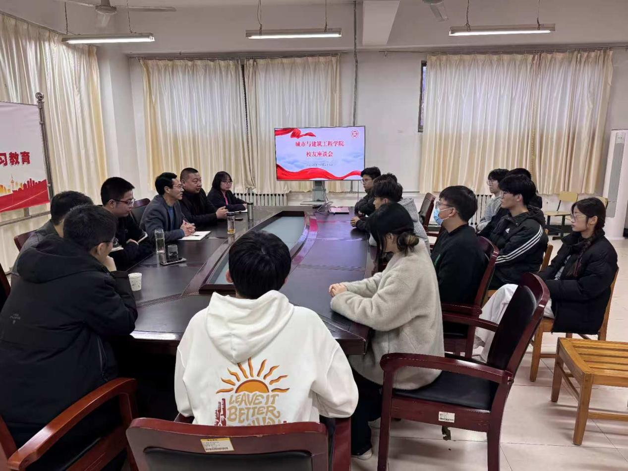 随后,学院师生代表与两位校友在理工楼2321进行了座谈交流。在座谈交流中,现场气氛热烈,同学们纷纷提问,就自己关心的专业学习、考研深造、职业规划等问题向校友们请教。校友们一一耐心解答,给出了针对性的建议和指导。