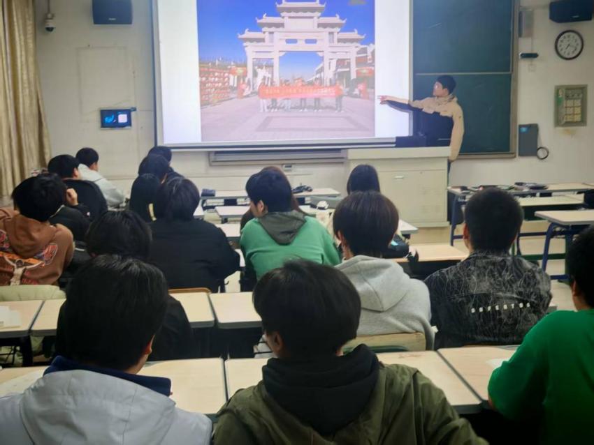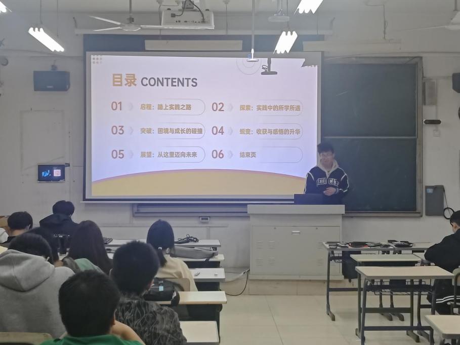 分享会上,多个实践团队和代表依次上台,通过PPT、图片、视频等丰富多样的形式,详细展示了各自的实践内容和成果。“青禾兴乡,土木先锋”寒假社会实践团队负责人王正同学讲述了在当地乡村进行志愿劳动、推广电商助农、记录古建遗迹的全过程,总结并分享了在寒假社会实践活动中获得的经验与感悟,鼓励同学们积极参加社会实践活动,在社会“大思政课”中锤炼自我,挺膺担当。