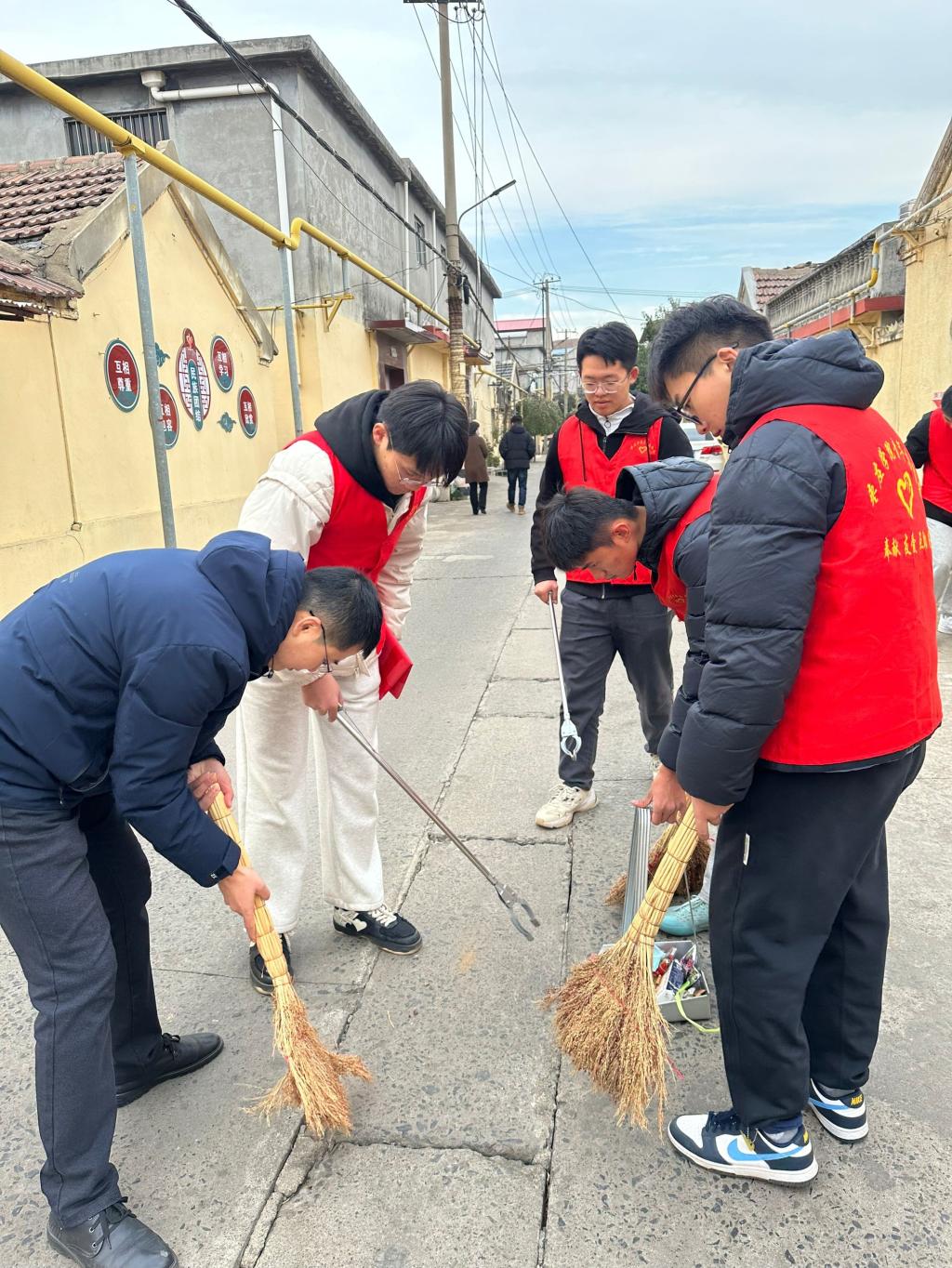 在志愿服务中,参与人员在社区中进行卫生打扫,清理街道垃圾,铲掉小广告等。本次志愿服务活动,是在学院老师与社区工作人员的监督和领导下进行的,为了安全起见由老师全程陪护。志愿服务结束后,清点人数并合影留念,收拾工具并归还。