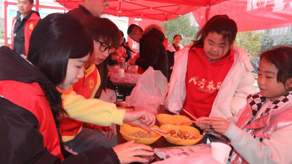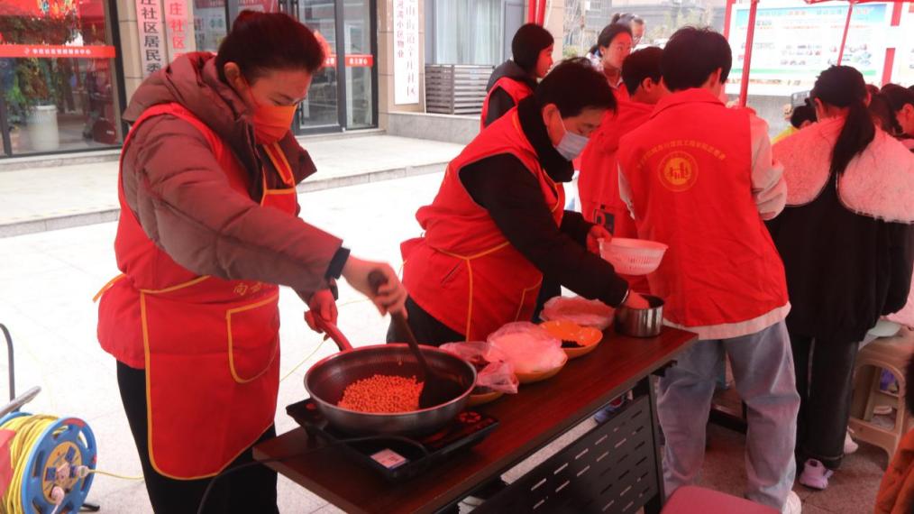 志愿者们和社区工作人员向社区青少年介绍了“二月二,龙抬头”的传统习俗,现场进行“炒糖豆”、“挑豆子”等传统民俗活动,社区居民都积极参与,活动现场热闹非凡。