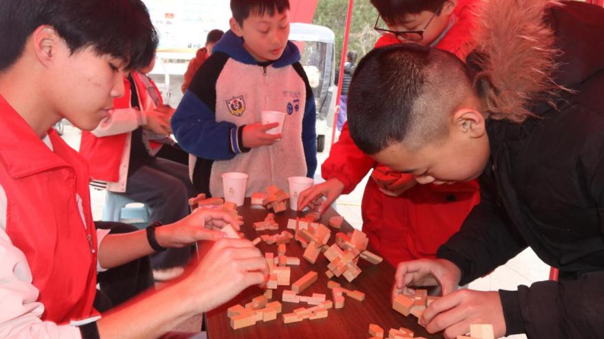 活动中还设置了传统建筑文化体验区,志愿者们详细讲解了榫卯建筑结构的历史与结构原理,指导孩子们拆装搭建鲁班锁、鲁班桥,体验中国传统建筑技艺,领略非遗文化中的建筑智慧。