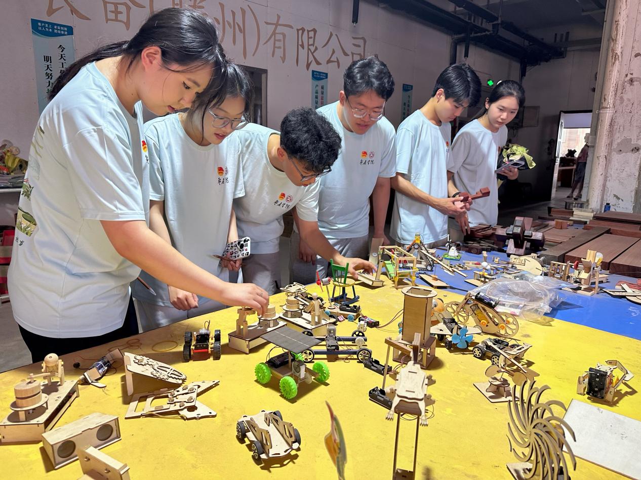 7月5日,实践团赴滕州市开展"班墨匠心"主题研学活动,走进墨子纪念馆与滕州博物馆,开启跨越千年的工匠精神溯源之旅。7月6日,实践团走进滕州思题姆教育装备有限公司,开展产教融合主题调研。队员们深入智能教具生产线,观摩"鲁班锁原理智能积木"从数控加工到质检的全流程;在研发中心体验墨子工程思维课程教具,探究传统工匠智慧与现代教育科技的创新融合。通过实地调研,探索“非遗+文创”的发展模式、“唤醒+创新”的设计思路,探索从“技艺传承”到“思维创新”的转化路径,引领青年在坚守中创新、创新中发展。