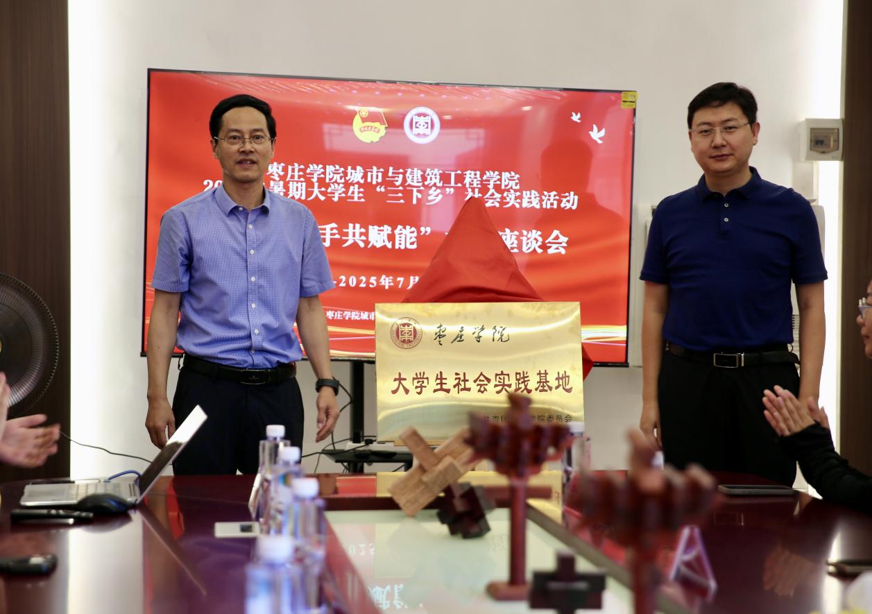 在前期充分调研和筹备的基础上,7月3日,实践团赴滕州市级索镇坝子崖村,与级索镇政府联合举办“校地携手共赋能”座谈会并举行“枣庄学院大学生社会实践基地”揭牌仪式。学院党委副书记胡新华与级索镇党委副书记、镇长邱勇展开深度对话。双方就人才培养、乡村建设、文化传承等话题深入交流。