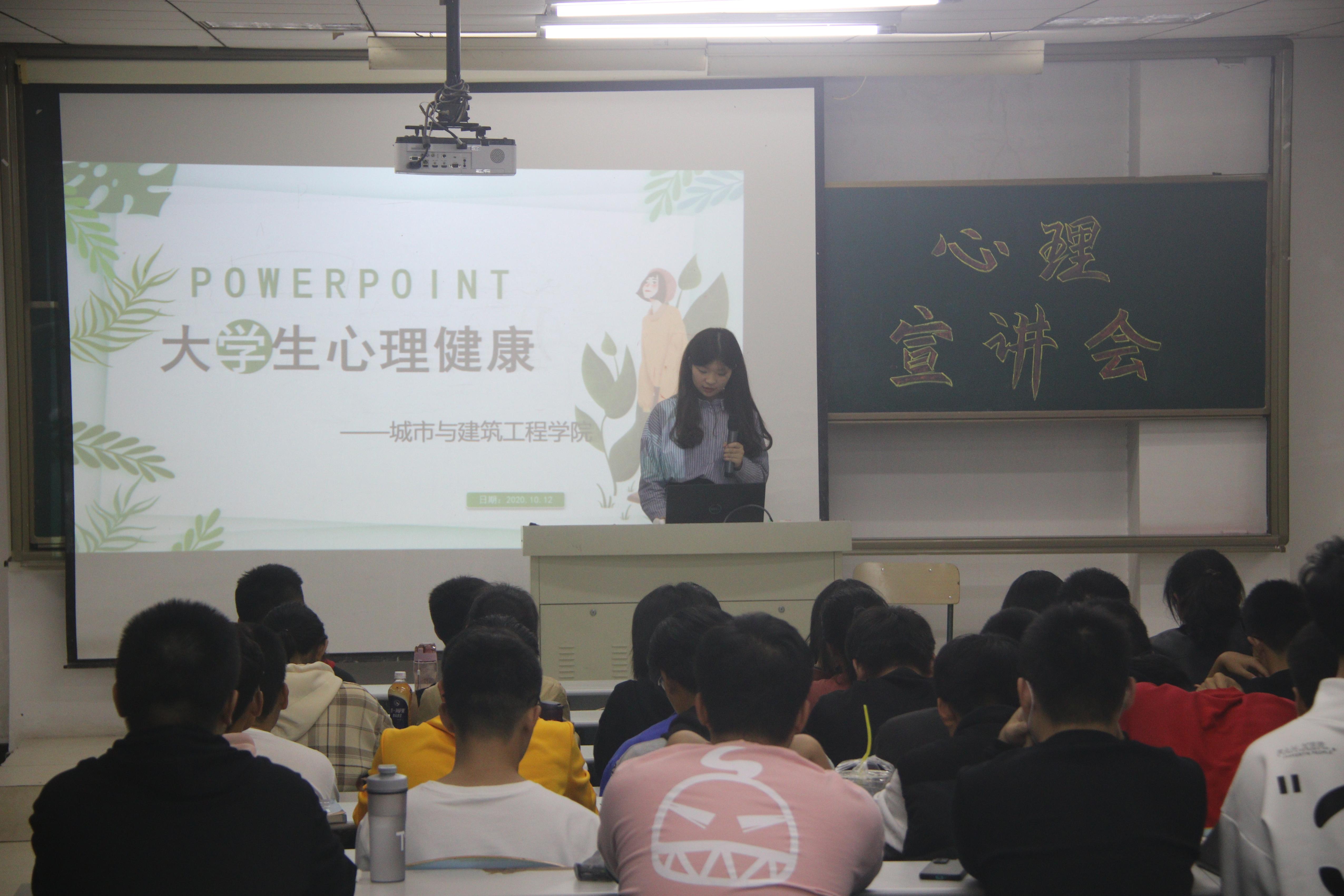 为更好的宣传与普及心理健康知识,使学生意识到心理健康的重要性,营造一种积极关注个体成长、自觉维护心理健康的校园氛围,提升新生的心理素质和班级凝聚力。bat365正版唯一官网于10月12日晚上19:00在理工楼2505组织召开大学生心理健康宣讲会,2020级全体学生参加了本次宣讲会。