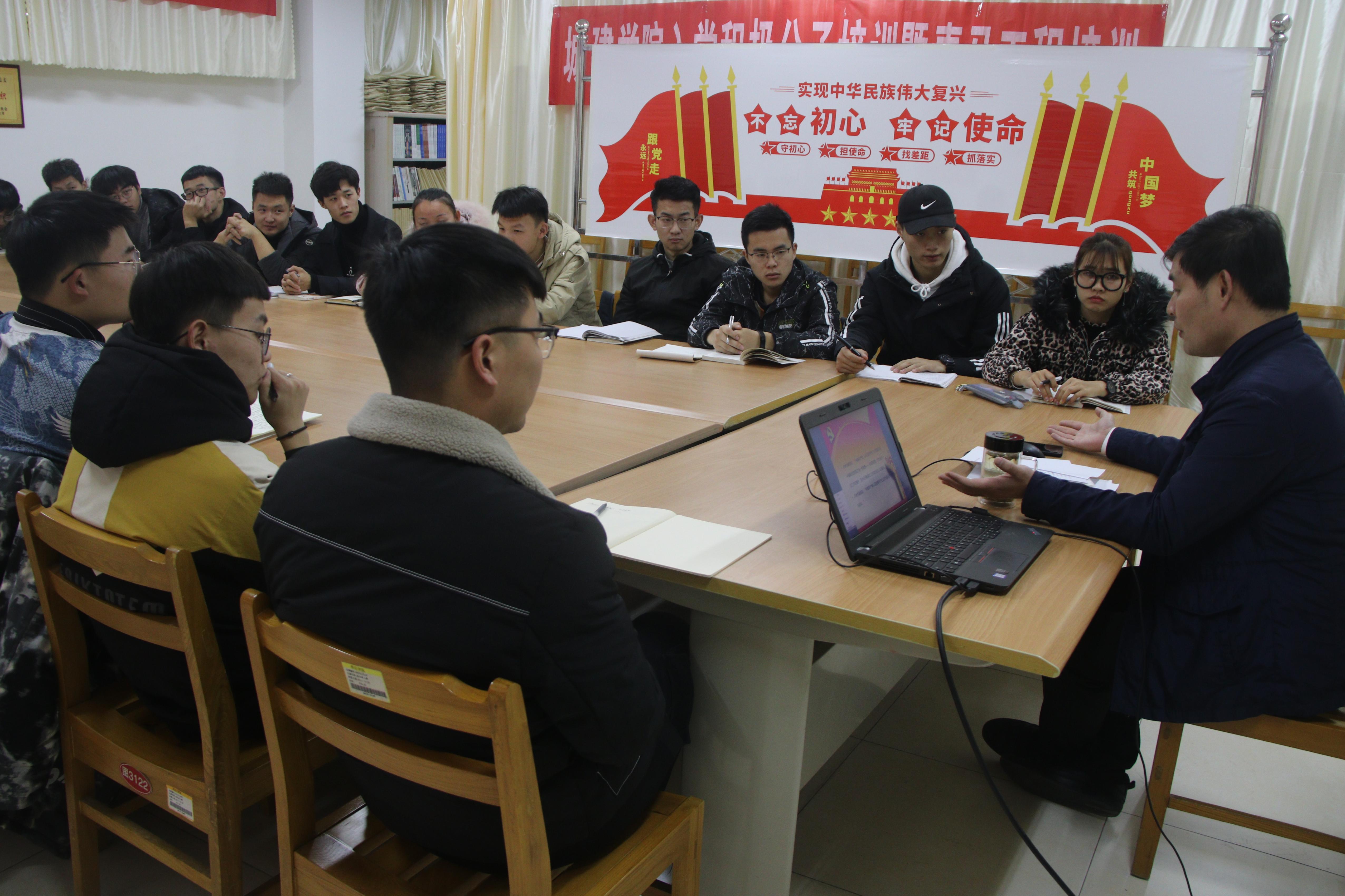 为了提高学生们的政治思想觉悟,并提高自身文化素养。城建学院开展了中国共产党的指导思想的党课座谈会。此次培训由党总支副书记徐海波主讲,2019年下半年全体入党积极分子参加培训。