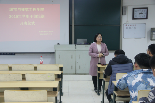 城市与建筑工程学院于2019年11月27日下午在理工楼2318召开2019年学生干部培训开班仪式。出席本次会议的有团总支书杜珊珊,城建学院的主席及各部部长和18、19级的班长团支书。