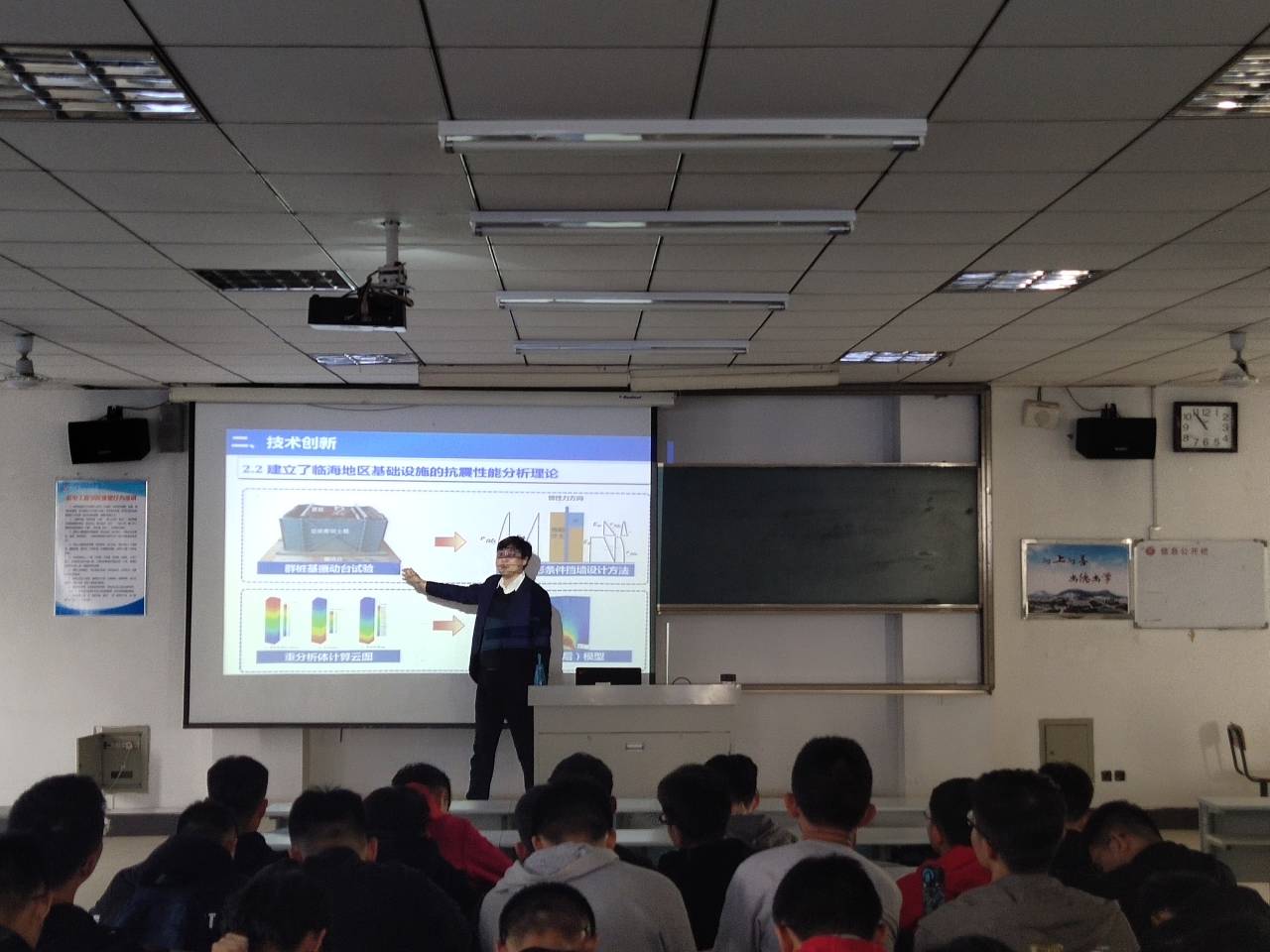 刘俊伟副院长首先做了自我介绍,他的学历、学术论文和文明中外的科研成果让同学们为之敬佩。接着,刘俊伟副院长在“临海复杂地质条件地下工程建设与评估关键技术”主题报告会上主要介绍了临海复杂地质条件地下工程的相关项目背景、技术创新以及应用情况。并且介绍了自己的研究生团队的发展与成就,同时鼓励同学们明确专业学习方向,制定专业学习发展规划,跟进时代发展步伐。报告会最后的提问环节,一名17级的同学和一名bat365官网的专业老师还与刘俊伟副院长探讨了专业考研的相关问题,刘院长为他做了详细解答。