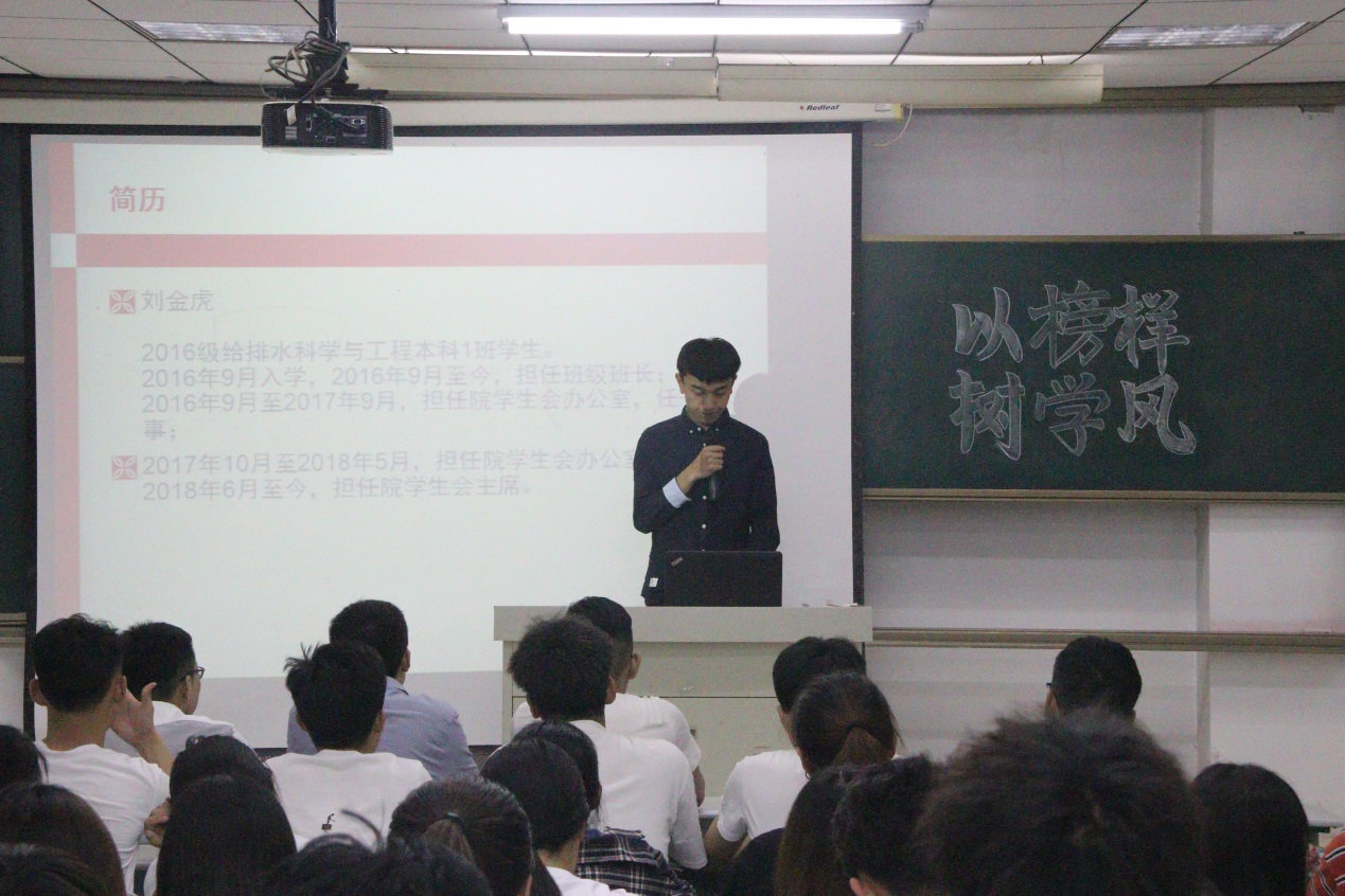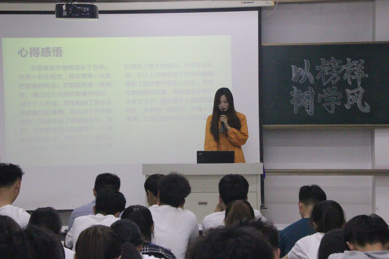5月22日,学院举行了“以榜样树学风”学习经验交流大会,对2018年度先进个人进行了表彰,邀请他们分别从专业学习、科学研究、学科竞赛、社会工作、志愿服务活动进行了现场交流。他们结合自己的经历,向参会同学介绍自己的学习经验和心得感想,鼓励低年级同学完成专业学习任务的同时,积极锻炼自己的能力,为成为一名优秀的大学生做出不懈努力。