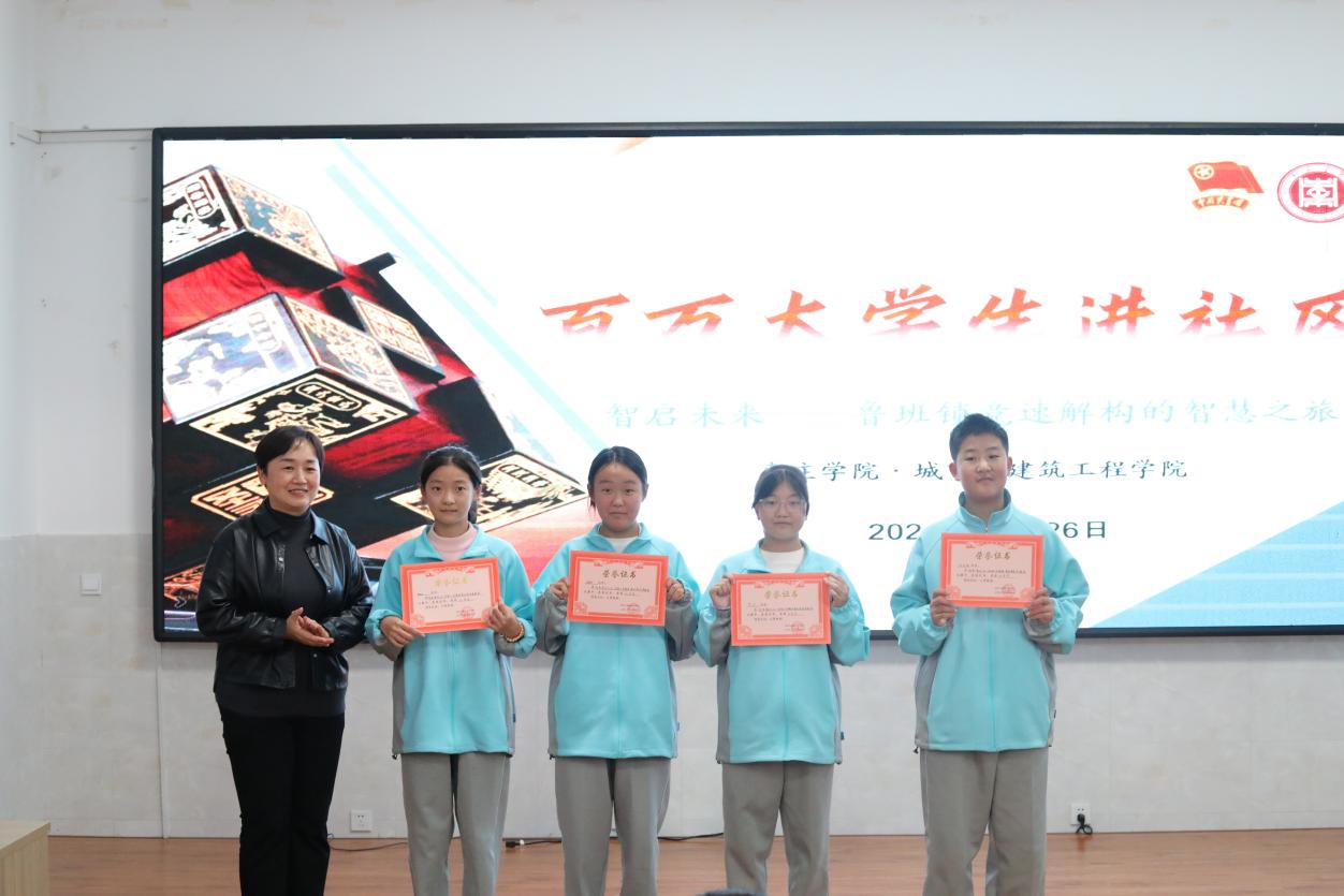 作为城建学院“百万大学生进社区”志愿服务项目,“传承鲁班文化 致敬工匠精神”宣讲暨鲁班锁竞速解构活动丰富了社区青少年学生的课余生活,使鲁班文化和工匠精神在他们心中生根发芽,进一步推动班墨文化在社区、在校园中发扬光大。