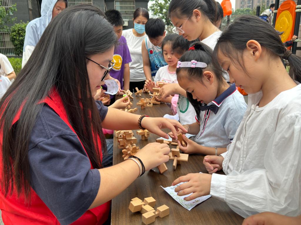 活动现场精心设置了五大特色区域——拍照打卡区、粽子套圈区、鲁班锁解密、公益义卖区、好运投壶区,宛如五颗璀璨的明珠,串联起民俗传承与亲子互动的精彩篇章。活动以集章打卡形式串联各环节,参与者凭印章兑换各类礼品。孩子们专注游戏,家长加油指导,bat365官网青年志愿者耐心协助,既在互动中增进感情,又活跃了现场气氛,充满欢声笑语。