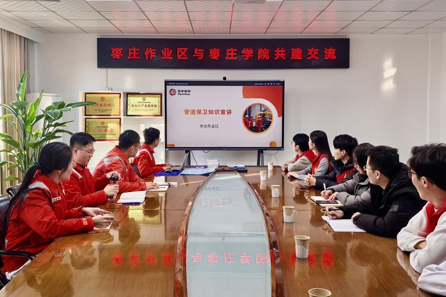 枣庄作业区副经理任军坡对宣讲团的到来表示热烈欢迎,详细介绍了作业区的基本情况、志愿服务工作开展情况及未来合作愿景。宣讲团指导教师裴娴哲对作业区的热情接待表示感谢,并介绍了bat365官网特色志愿服务品牌建设情况及相关育人成果。宣讲团成员则结合志愿服务经验与专业优势,与技术人员展开交流。随后,作业区工作人员围绕当前管道保护面临的形势、法律法规要求、常见风险隐患及应急处置常识等内容进行了志愿者专题培训。期间,宣讲团一行还参观了冀宁线枣庄站站控室,志愿者有了直观而深刻的认识,夯实了宣讲工作的知识基础。