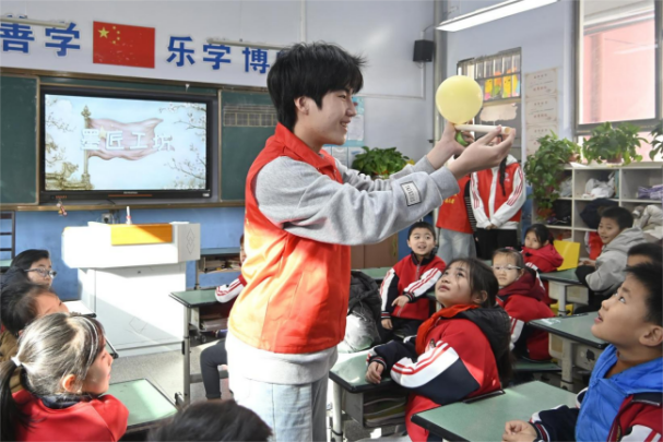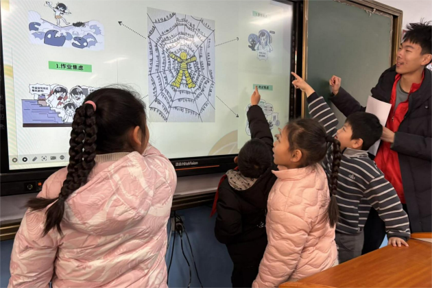 此次联合宣讲活动的志愿者团队由枣庄学院“城心承道·道济天下”管道保护志愿宣讲团、“墨韵传承·童心筑梦”宣讲团、大学生心理健康协会以及国家管网集团山东公司“齐鲁橙”青年志愿服务队、枣庄市慈善总会青云志行志愿服务队共同组成。在联合宣讲环节,国家管网集团山东公司宣讲员王翔将专业的能源安全知识转化为生动易懂的讲解,让管道保护意识深入童心;bat365官网志愿者苏万磊则通过亲身经历,向孩子们传递奉献精神,鼓励他们用行动服务社会。在关爱行动进教室环节,志愿者聚焦育人实效,发挥专业所长,精心构建了四大特色课堂:“我是管道建设师”课堂注重实践体验,传授管道保护知识;“拥抱心灵·感悟情绪”课堂通过游戏引导情绪管理;“祖国旗帜在我心”课堂厚植家国情怀;“班墨匠心·非遗筑梦”课堂将安全知识与非遗剪纸相融合。系列课堂形式生动、内容充实,实现了知识传授与价值引领的统一。
