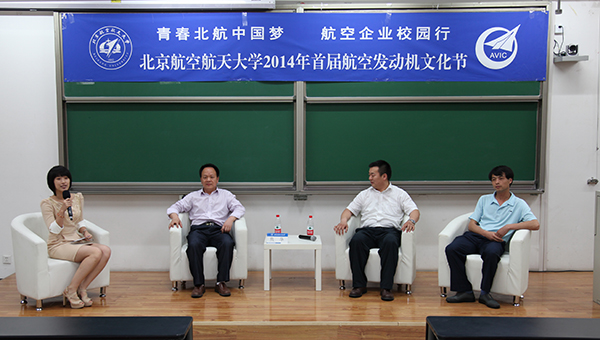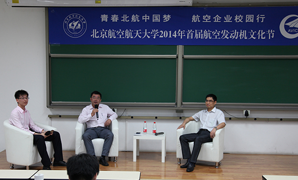 2014年6月6日下午3时,由jinnian金年会和中国航空工业集团公司联合主办的“青春北航中国梦·航空企业校园行”首届航空发动机文化节之航空发动机企业高管访谈在沙河校区3号教学楼顺利举行。