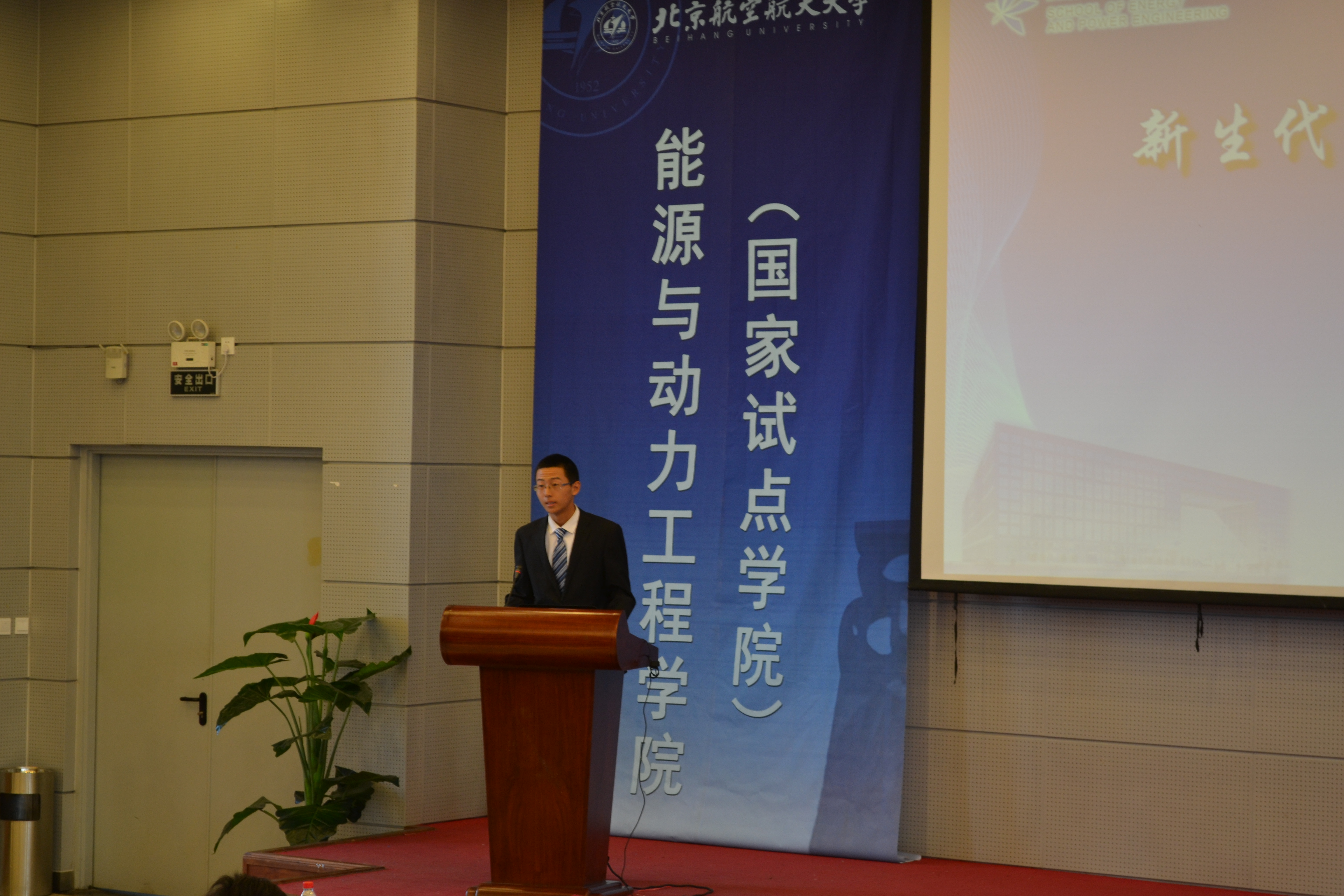 2014级新生代表杨哲夫和2013级老生代表李健坤上台发言,杨哲夫同学在发言中展现了四系2014级新生的风采和朝气,李健坤同学则从一名大二学生的角度和新生们分享了学习经验,并对所有新生的到来表示欢迎。