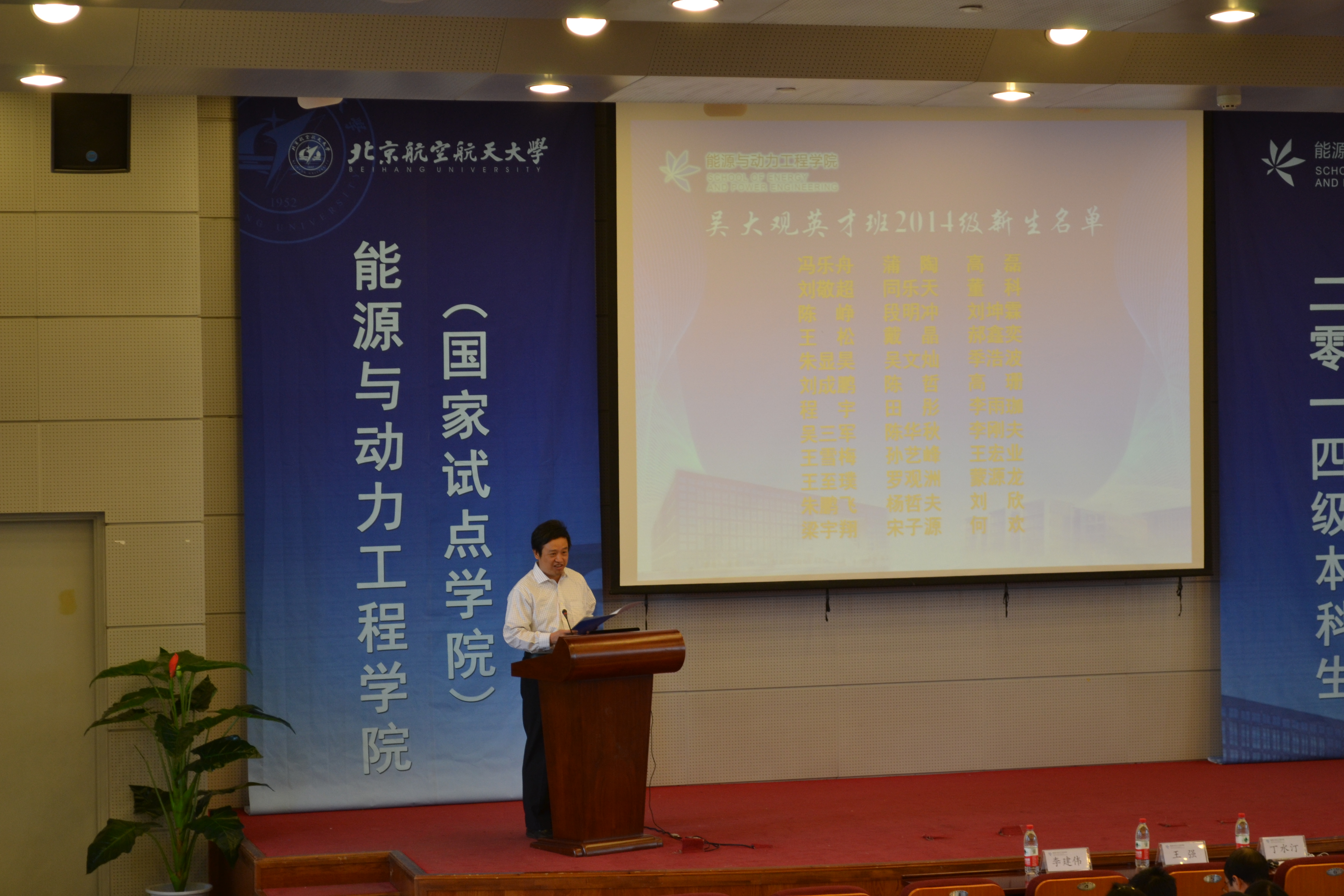 开学典礼在同学们热烈的掌声中开始。王强书记宣读了吴大观英才班2014级新生名单,对所有入选同学表示祝贺,并鼓励没有入选的同学不要灰心,努力进取。