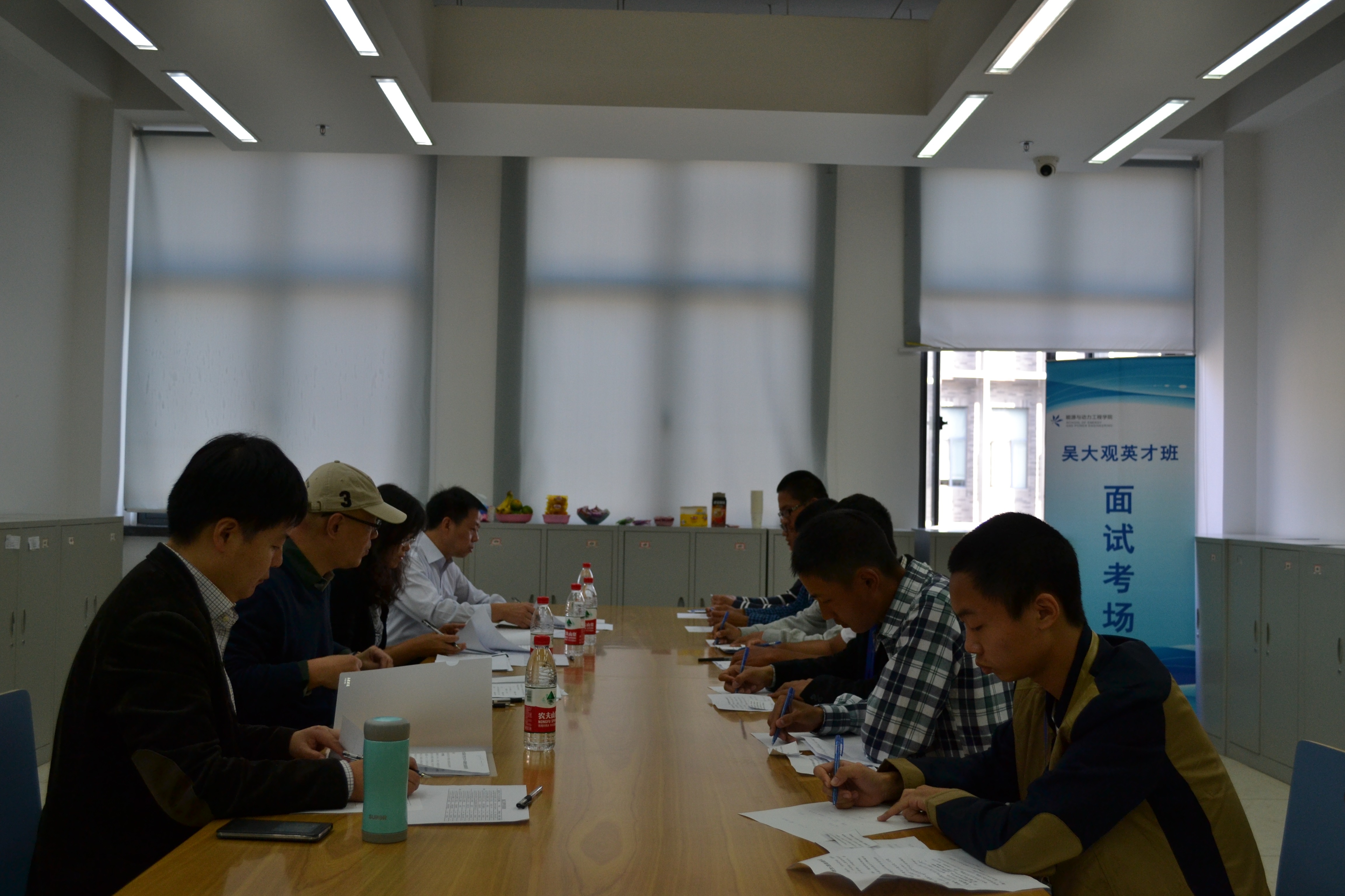 为了切实做好本次吴大观英才班的选拔工作,学院于9月份专门召开选拔方案研讨会,进一步优化了相关选拔方案,并于9月初组织了选拔笔试,重点考察了学生的抽象思维、形象思维、逻辑推理等方面能力。9月18日,学院邀请中航工业沈阳黎明航空发动机集团有限责任公司人力资源部赵正部长、中国航空动力机械研究所邹学奇副总师,汇同 “吴大观英才班” 选拔考核指导委员会校内专家等共计12人对学生进行了面试选拔,面试环节重点考察考生的情商、潜质、个性、表达、团队协作等综合素质,最终从39名面试学生中选拔出了新一届“吴大观英才班”。