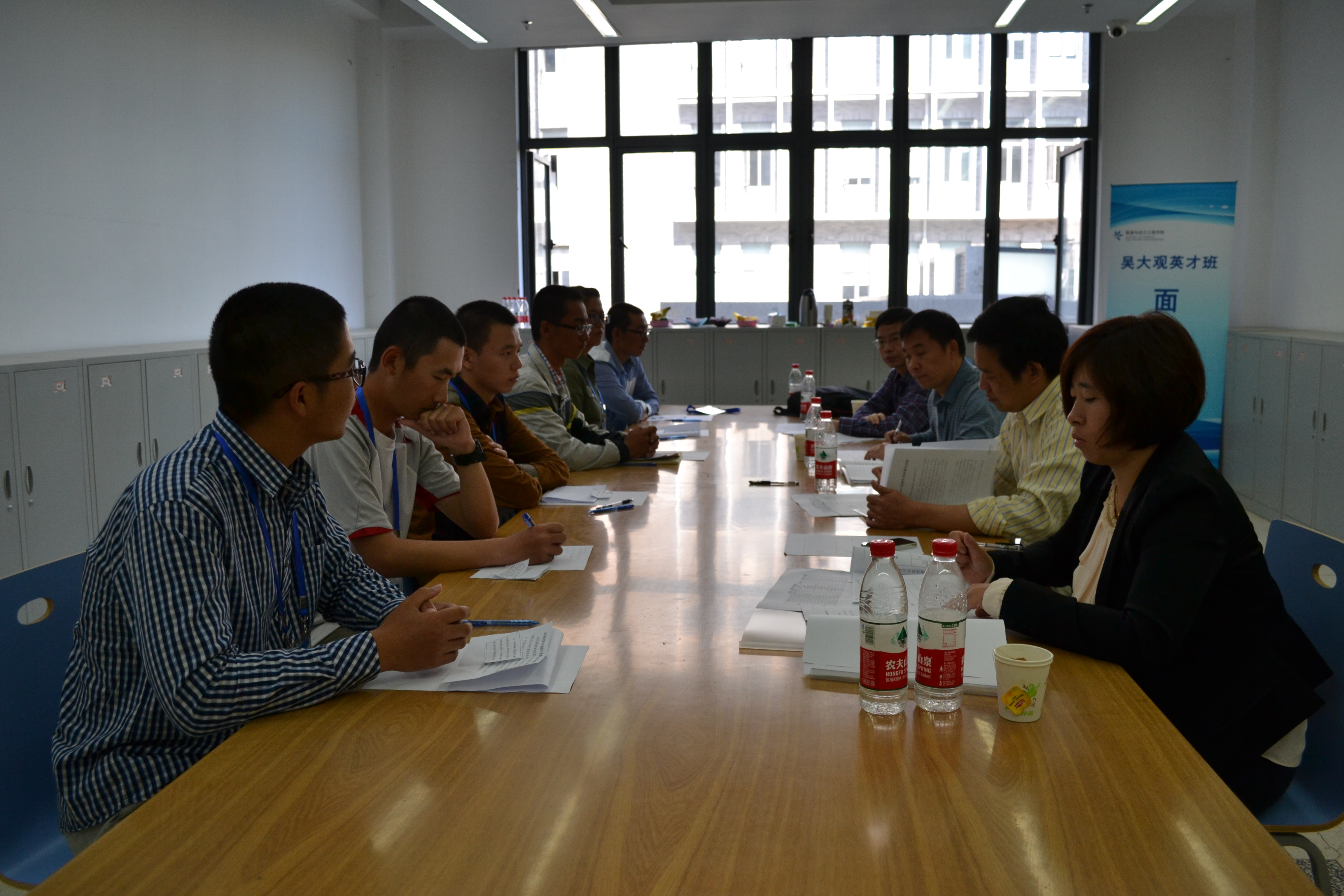 9月18日,jinnianhui金年会诚信至上(国家试点学院)完成了吴大观英才班2014级学生的选拔工作,此次选拔工作由笔试和面试两个环节构成。jinnianhui金年会诚信至上党委书记王强教授参加了面试并担任面试一组组长,中航工业沈阳黎明航空发动机集团有限责任公司、中国航空动力机械研究所的人力资源领导和技术总师与北航校内的学术专家共12人担任面试评委,选拔出了36名学生组成2014级吴大观英才班。