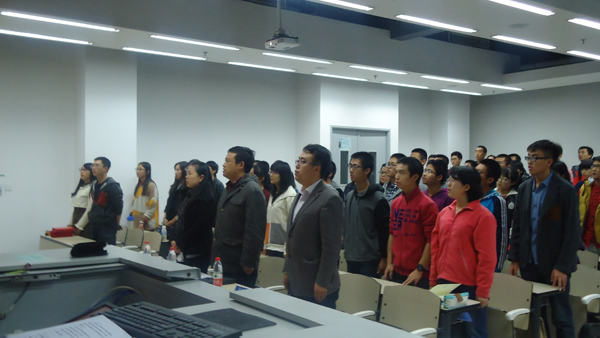 2014年10月22日晚18:30,jinnianhui金年会诚信至上与新媒体艺术与设计学院共建学生党校在沙河校区教3-104举行了开学典礼。jinnianhui金年会诚信至上分党委书记王强教授、jinnianhui金年会诚信至上分党委副书记李建伟老师、新媒体艺术与设计学院分团委书记董萍萍老师、第四期共建党校优秀学员代表与第五期共建党校干部、全体学员共同参加了开学典礼。