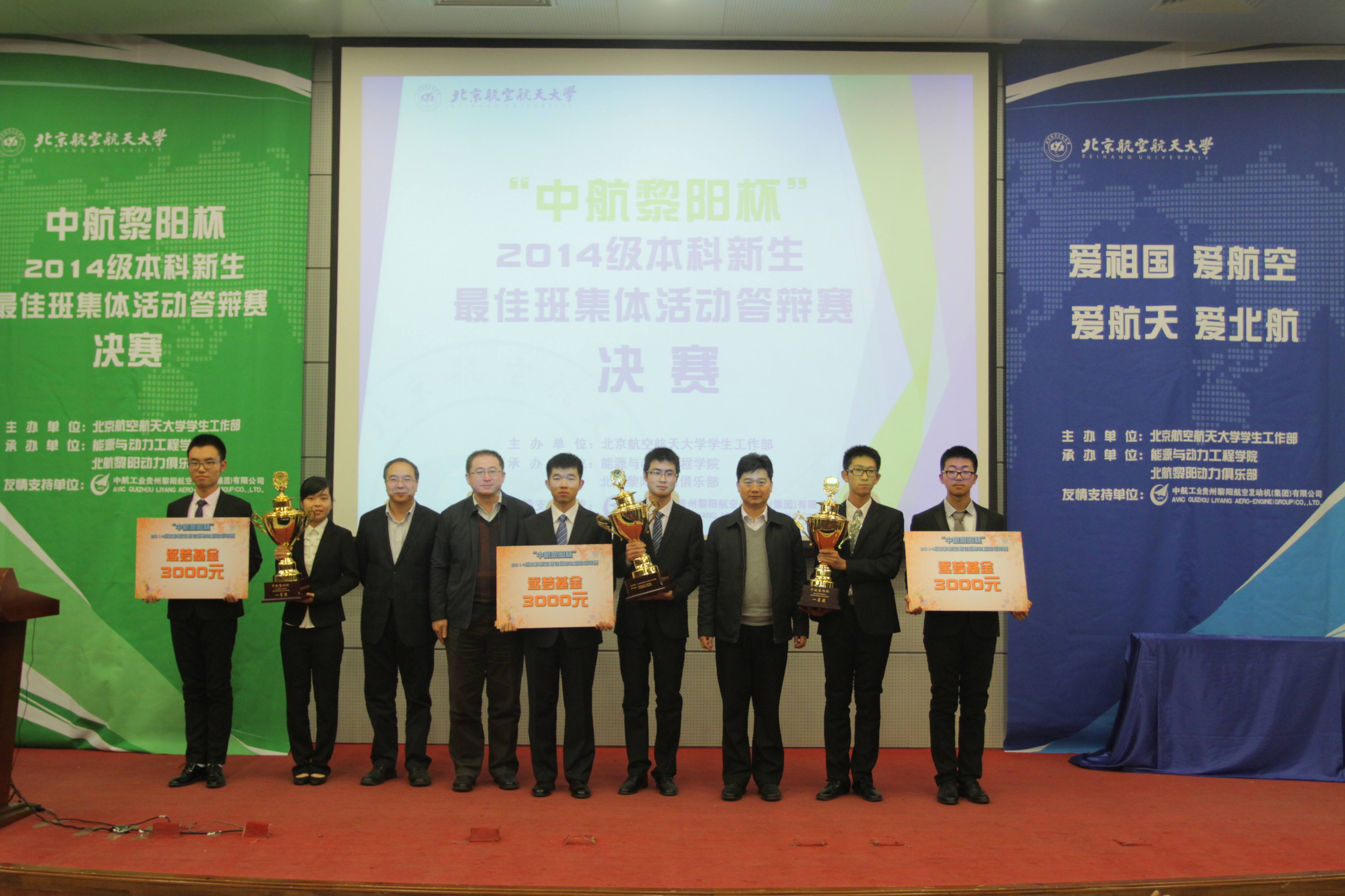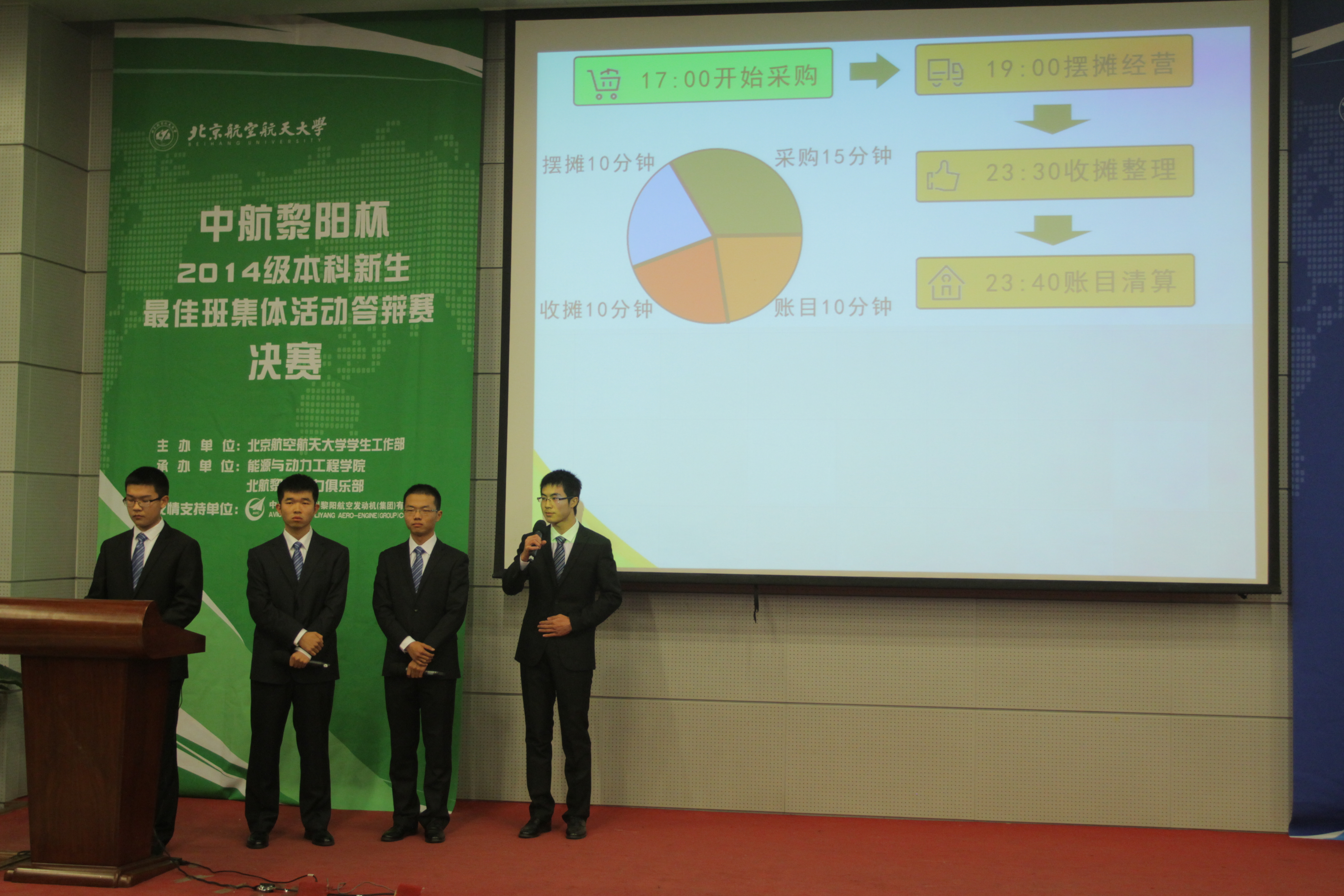 11月26日晚,由jinnian金年会学生工作部主办,jinnianhui金年会诚信至上、北航黎阳动力俱乐部共同承办的“中航黎阳杯”jinnian金年会2014级本科新生最佳班集体活动答辩赛决赛在沙河校区实验四号楼205报告厅顺利举行。